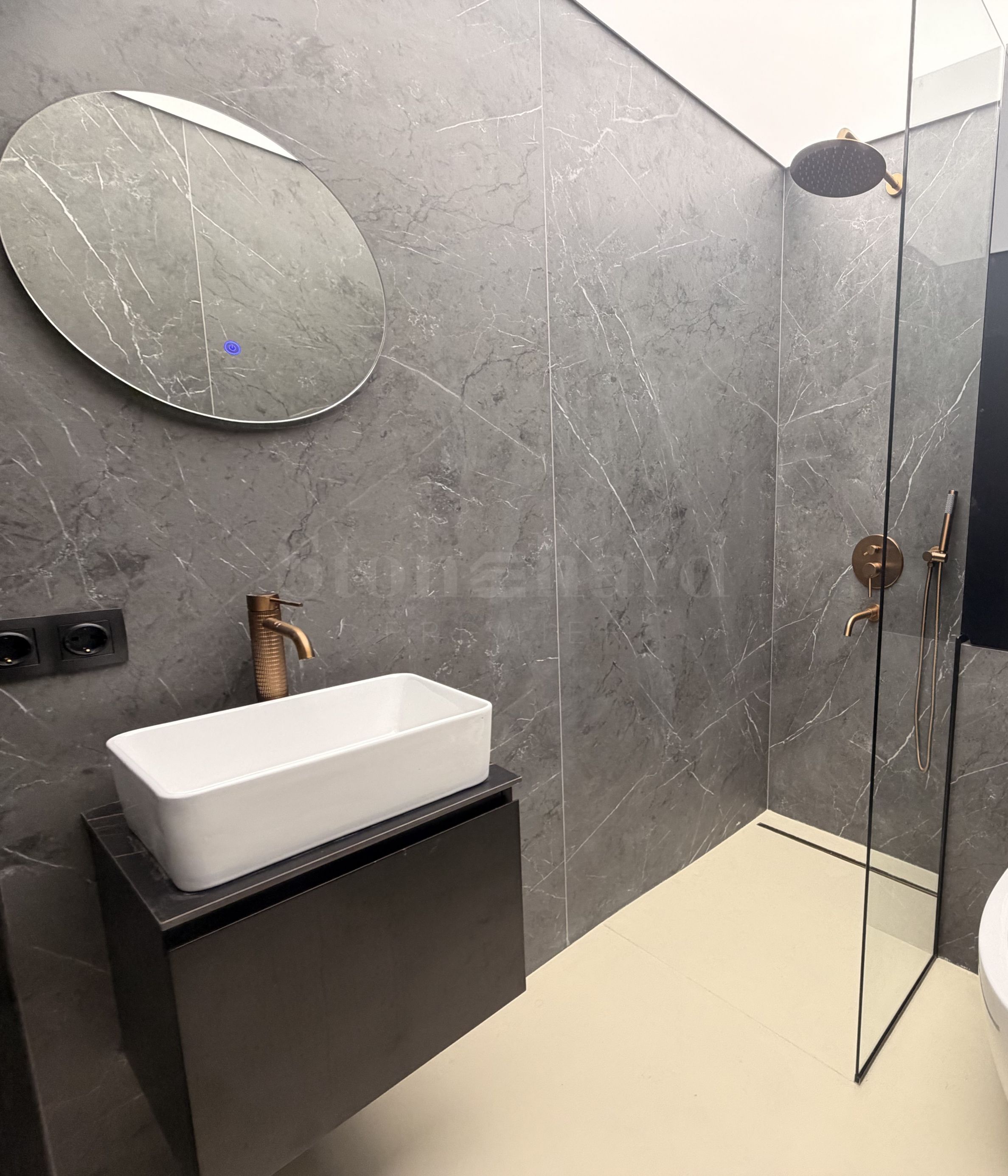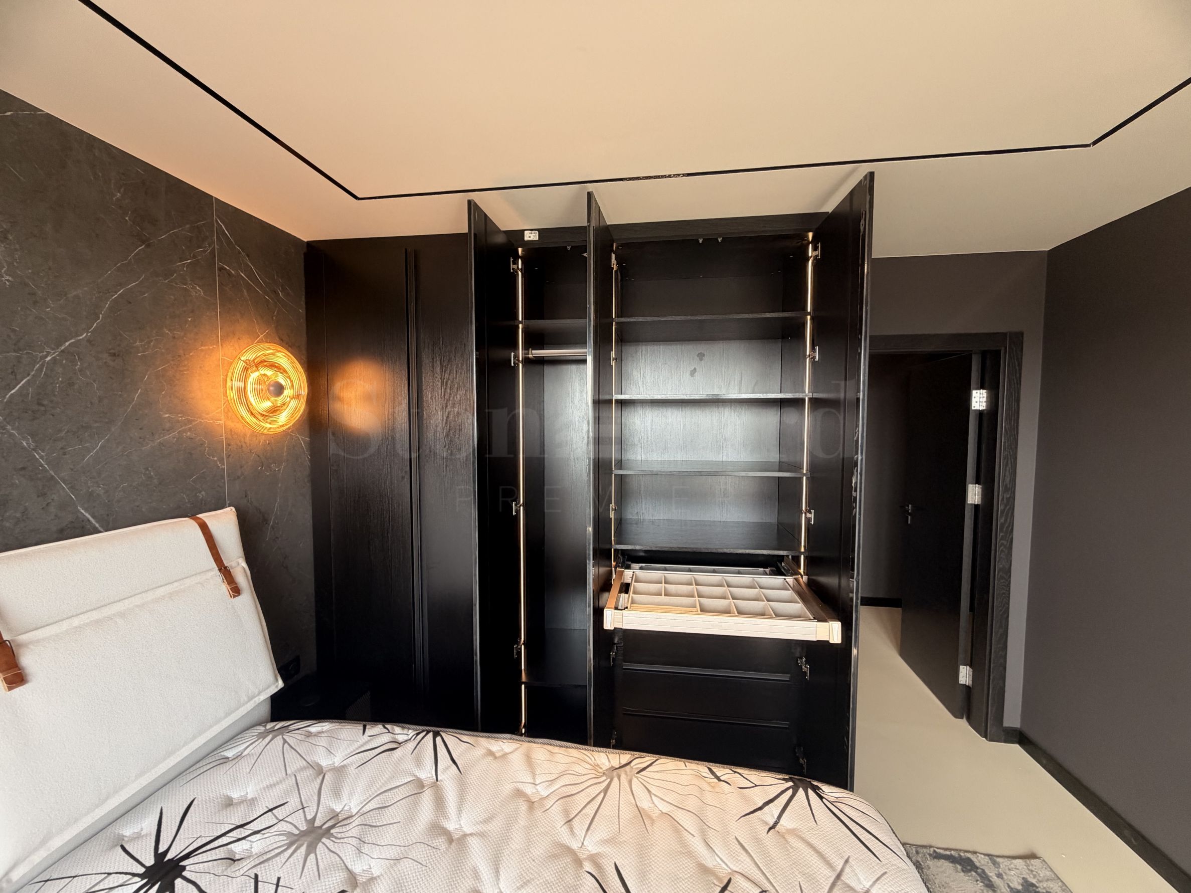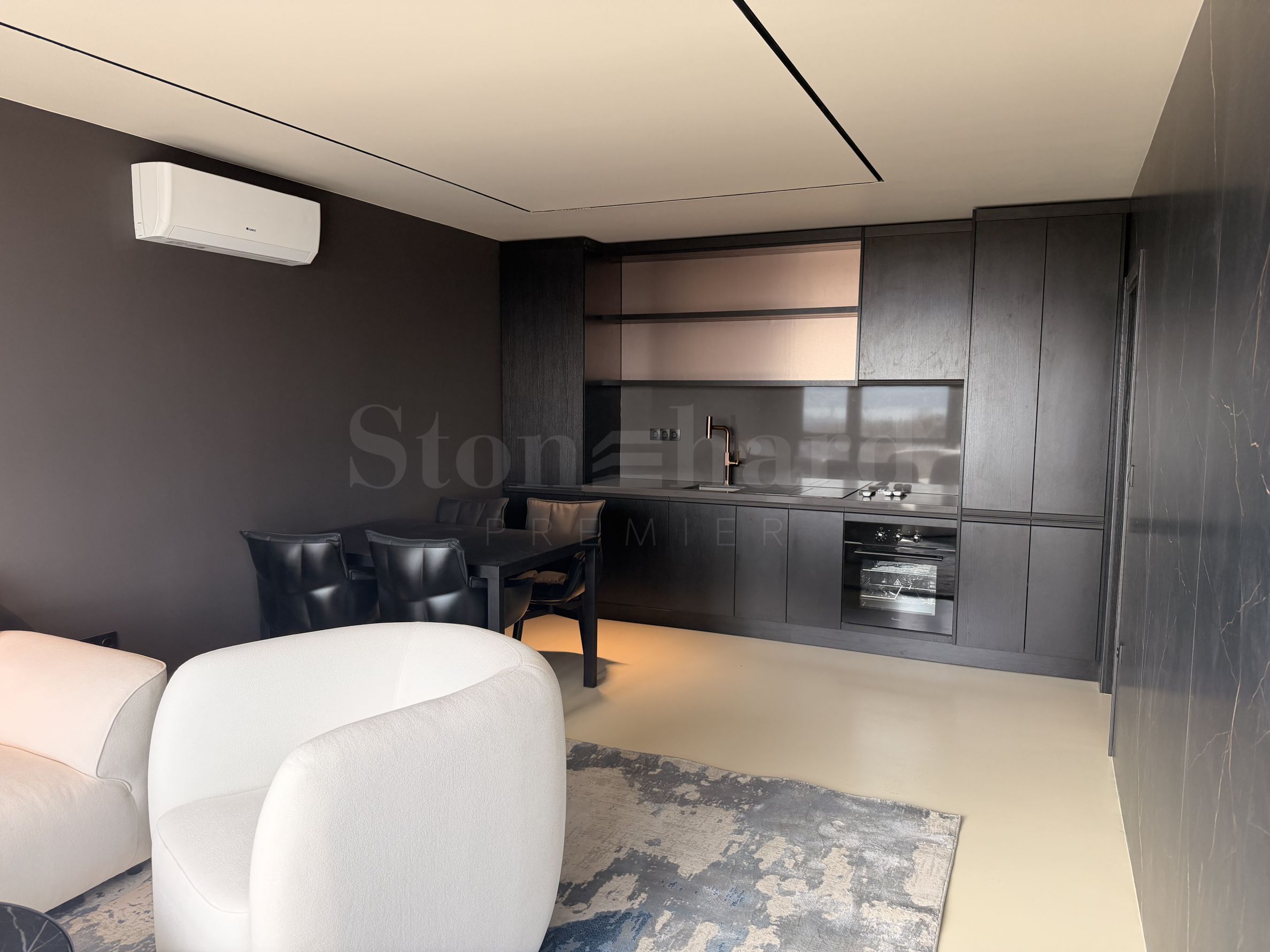 Апартаментът е завършен по индивидуален дизайнерски проект с вложени материали от най-висок клас, съчетаващи естетика, комфорт и функционалност. Пространството е изпълнено със светлина благодарение на благоприятното югоизточно изложение, а от имота се разкрива панорамна гледка към града.