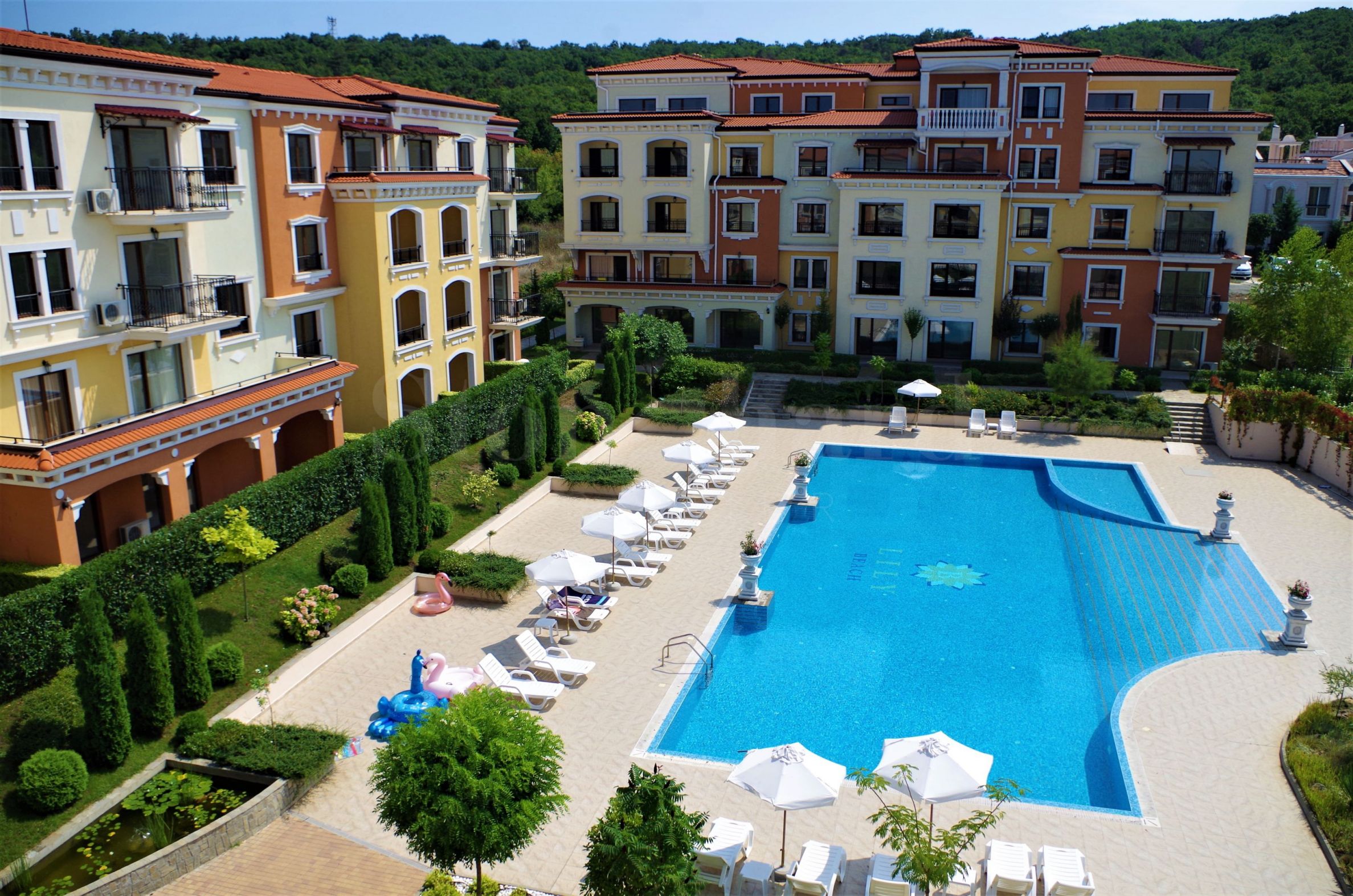 Всички апартаменти в комплекса имат различни изгледи, към гората, към басейна, вътрешната част на комплекса и към морето.