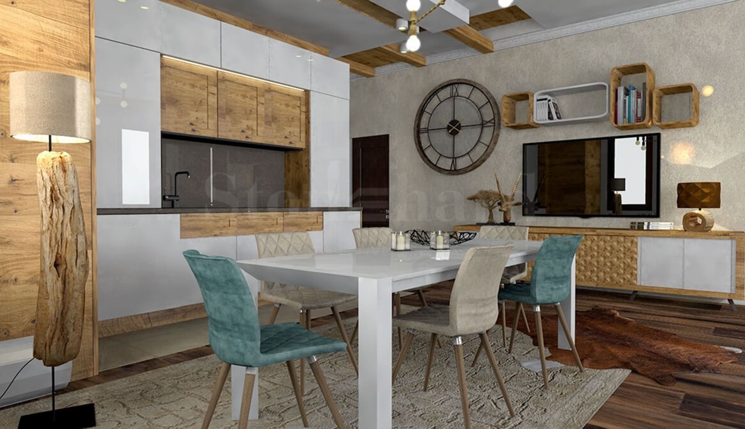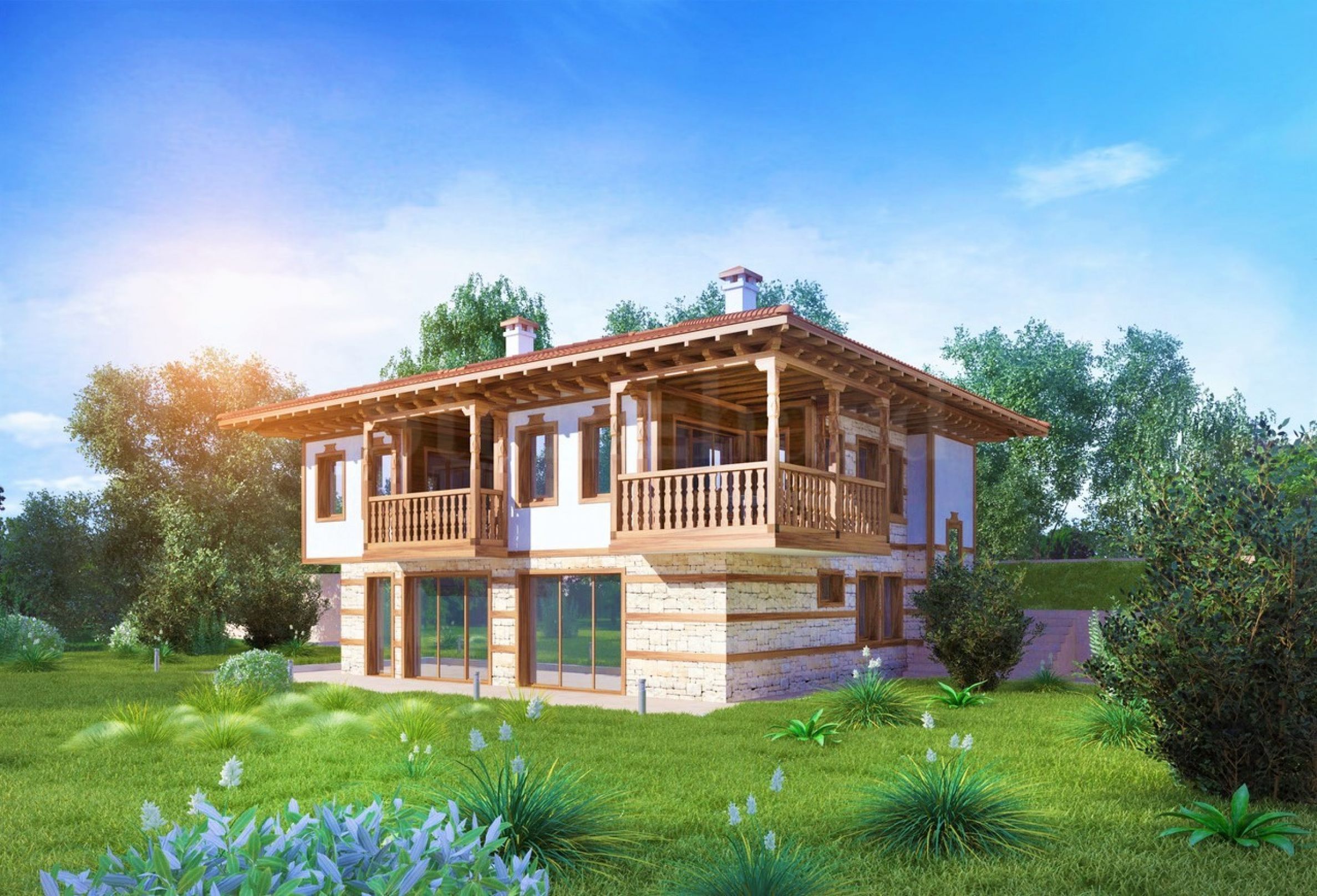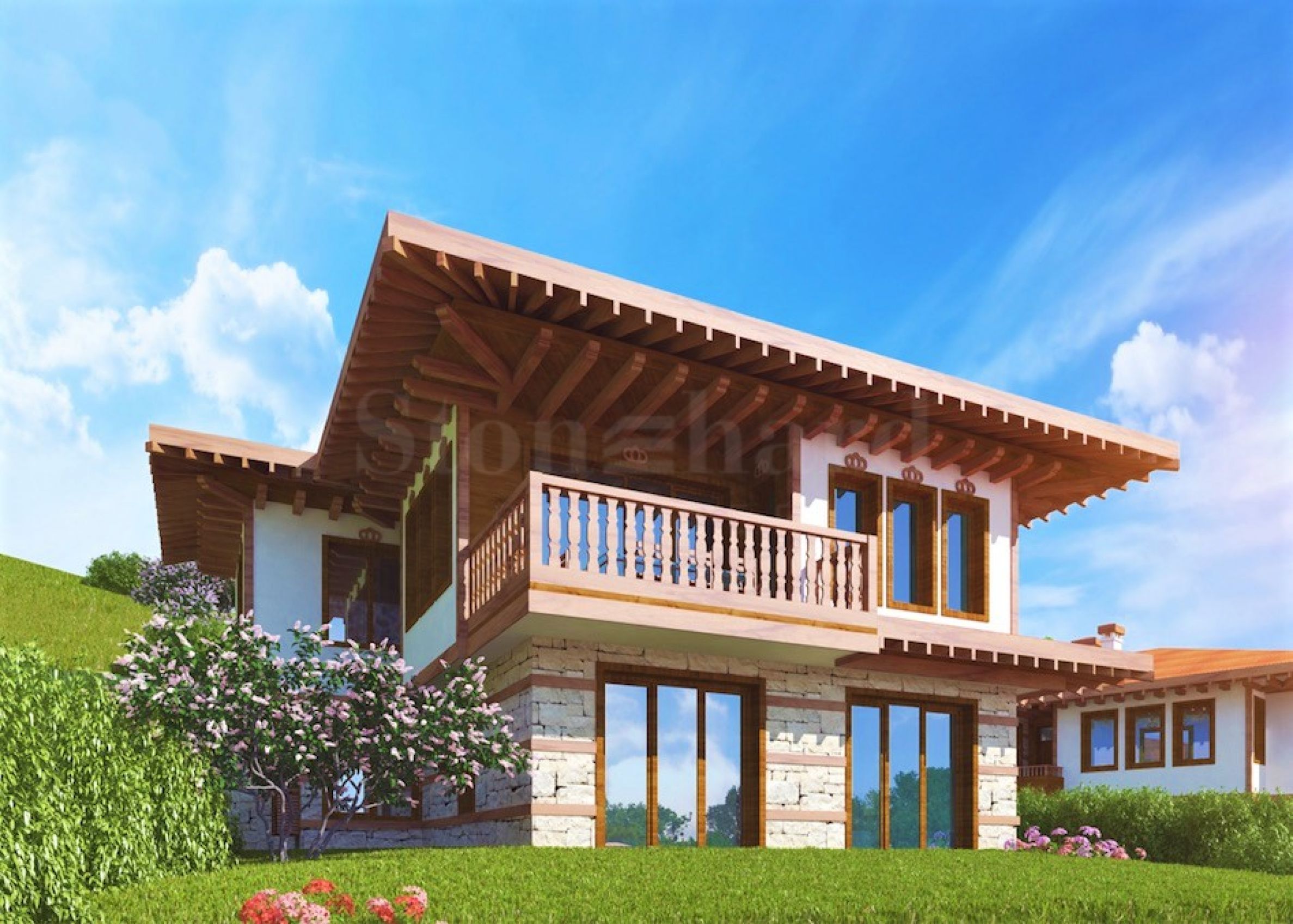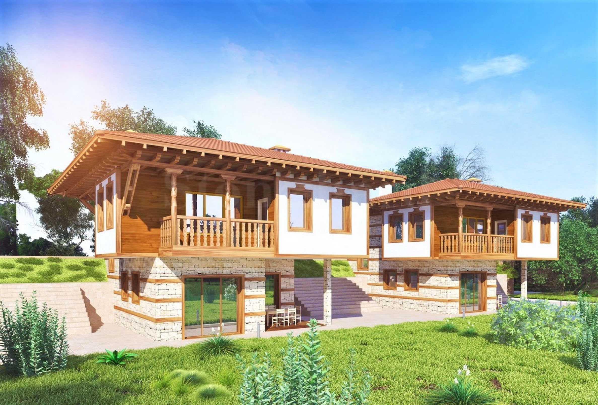 Първият етап на строителството на еко-комплекса е стартирал в началото на 2020 г. Архитектурният образ на къщите може да се отнесе към възрожденската архитектура. На лице са характерните за този стил материали и визия с еркери и изнесени стрехи на покрива. Първото ниво на сградата е решено с облицовка от камък. Вторият етаж е с бяла минерална мазилка и дъсчена обшивка. Присъстват и характерните кантирания на ъглите, стените и рамките на прозорците със сантрачи и дървен материал. Покривът е скатен с дървена конструкция и декоративни елементи.