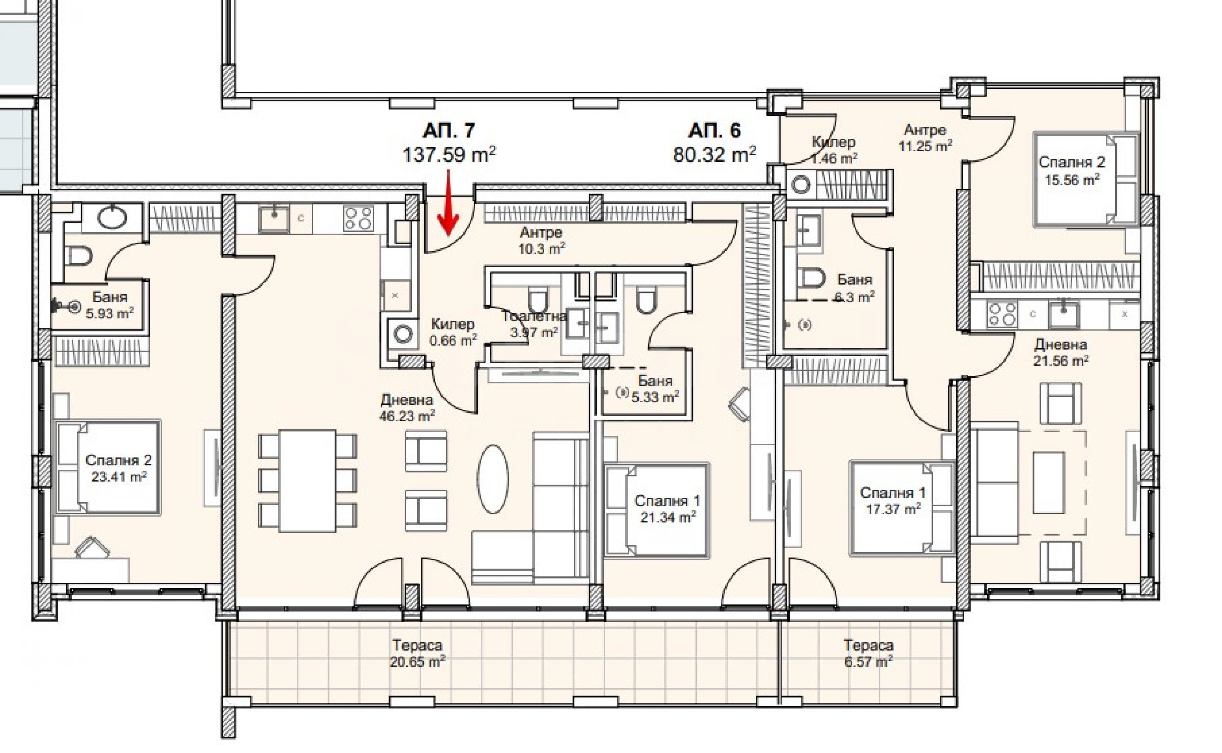 Площи на жилищата: 187.12 м2