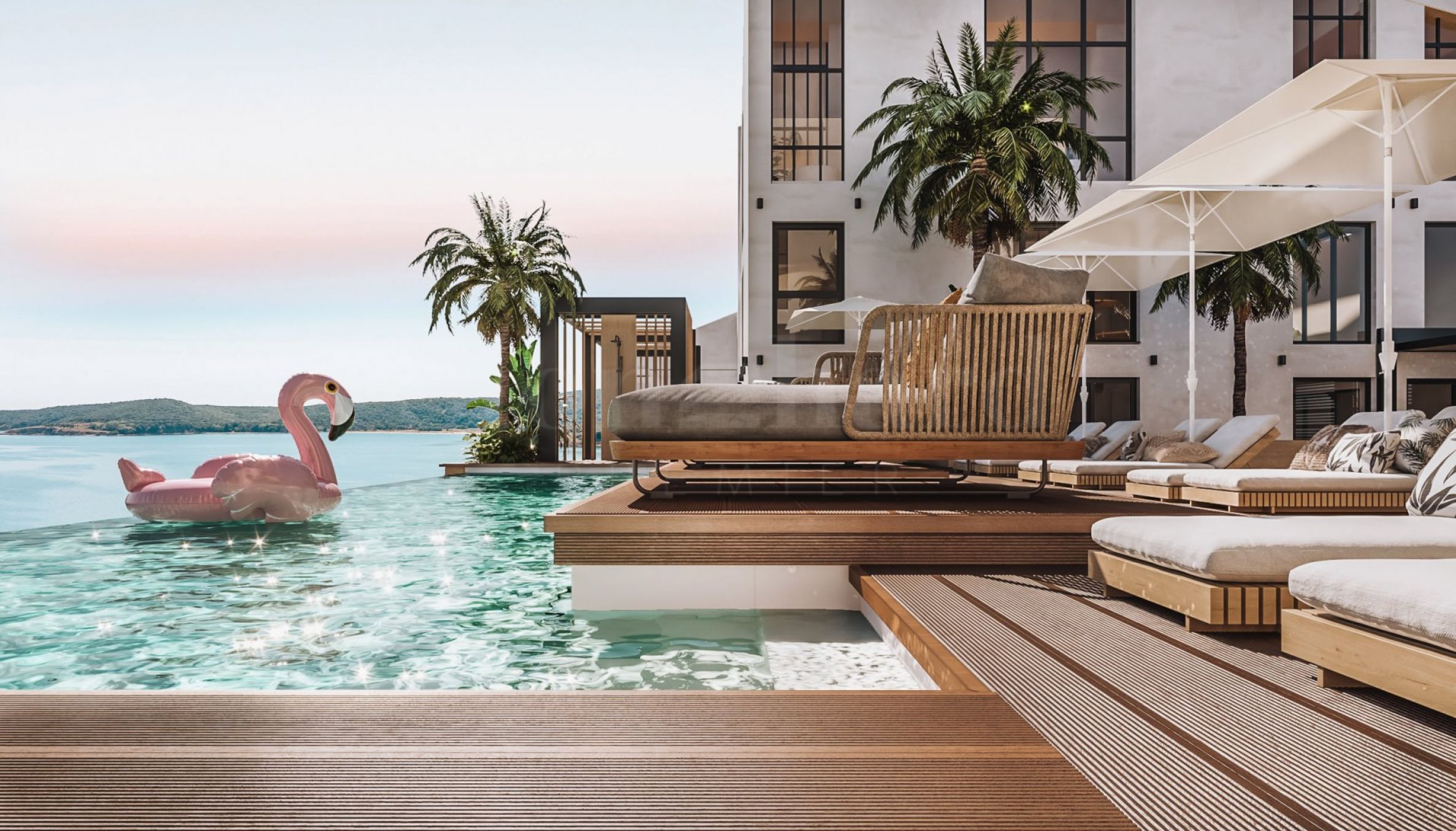 Тристаен апартамент с гледка към басейна в бутиков комплекс на Каваците