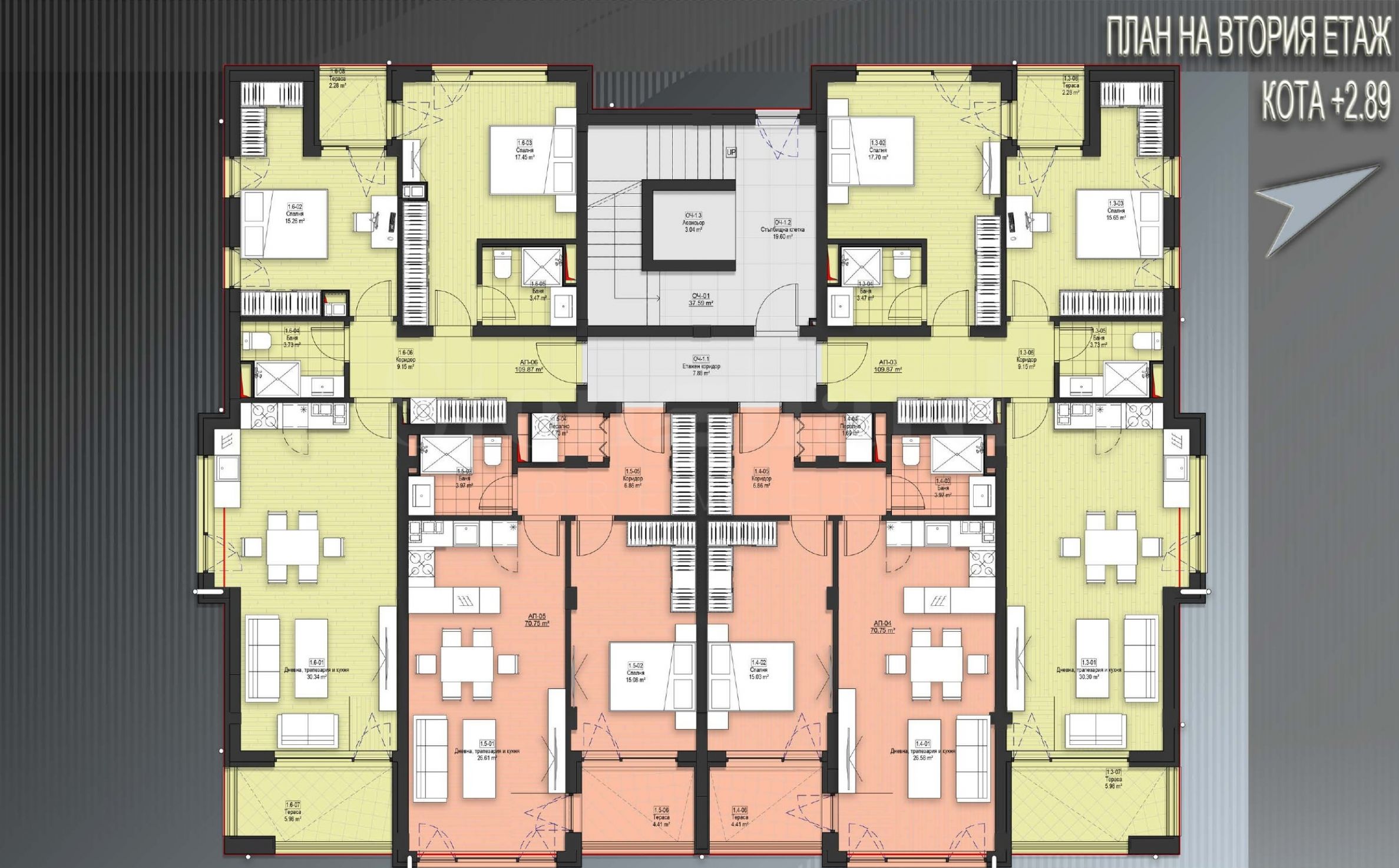 Жилищната сграда се изпълнява с първокласни материали по еврокодове и европейски стандарт, с паспорт за енергийна ефективност.