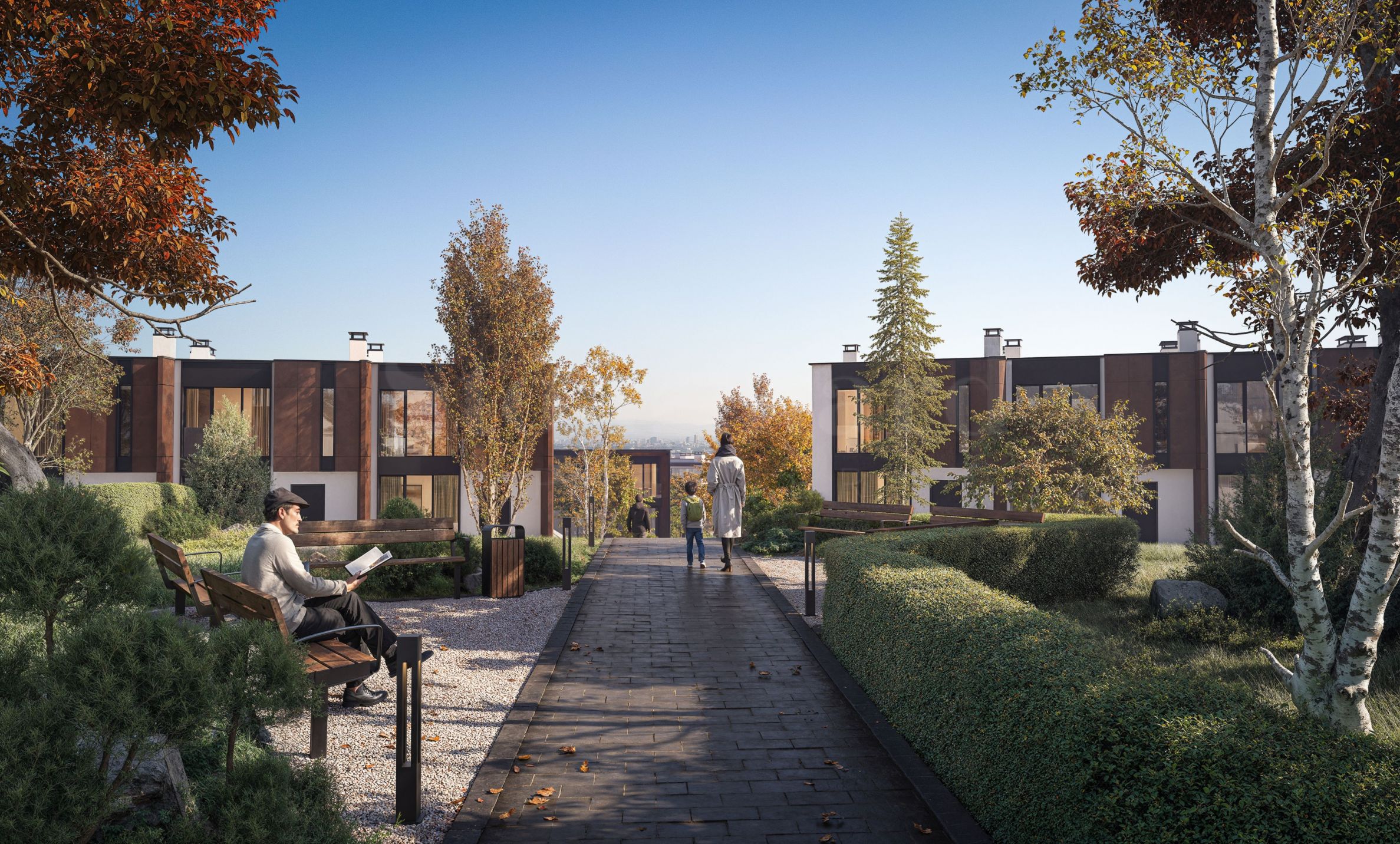 редови къщи и къщи тип близнак, с площ от 285 кв.м до 454 кв.м.