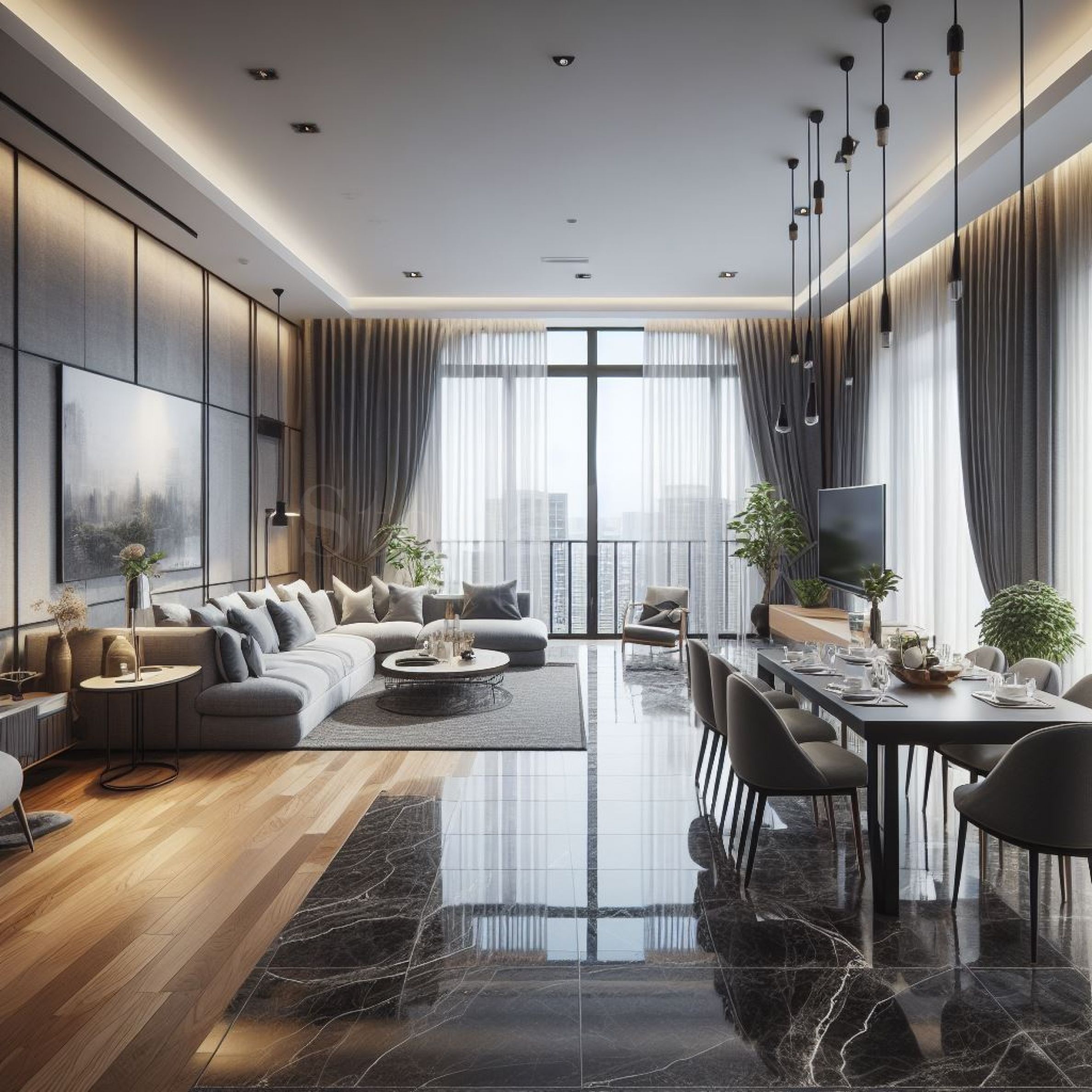 Забележително жилище, намиращо се на 16-и етаж. Двойното му, югозападно изложение осигурява обилна слънчева светлина през целия ден, а високият етаж - впечатляващи гледки към Витоша. Антрето ви въвежда в изключително светла и просторна всекидневна с голяма трапезария (54.91 кв.м.), обградена от огромни френски прозорци, голяма кухня от отворен тип, високи тавани и слънчева тераса.