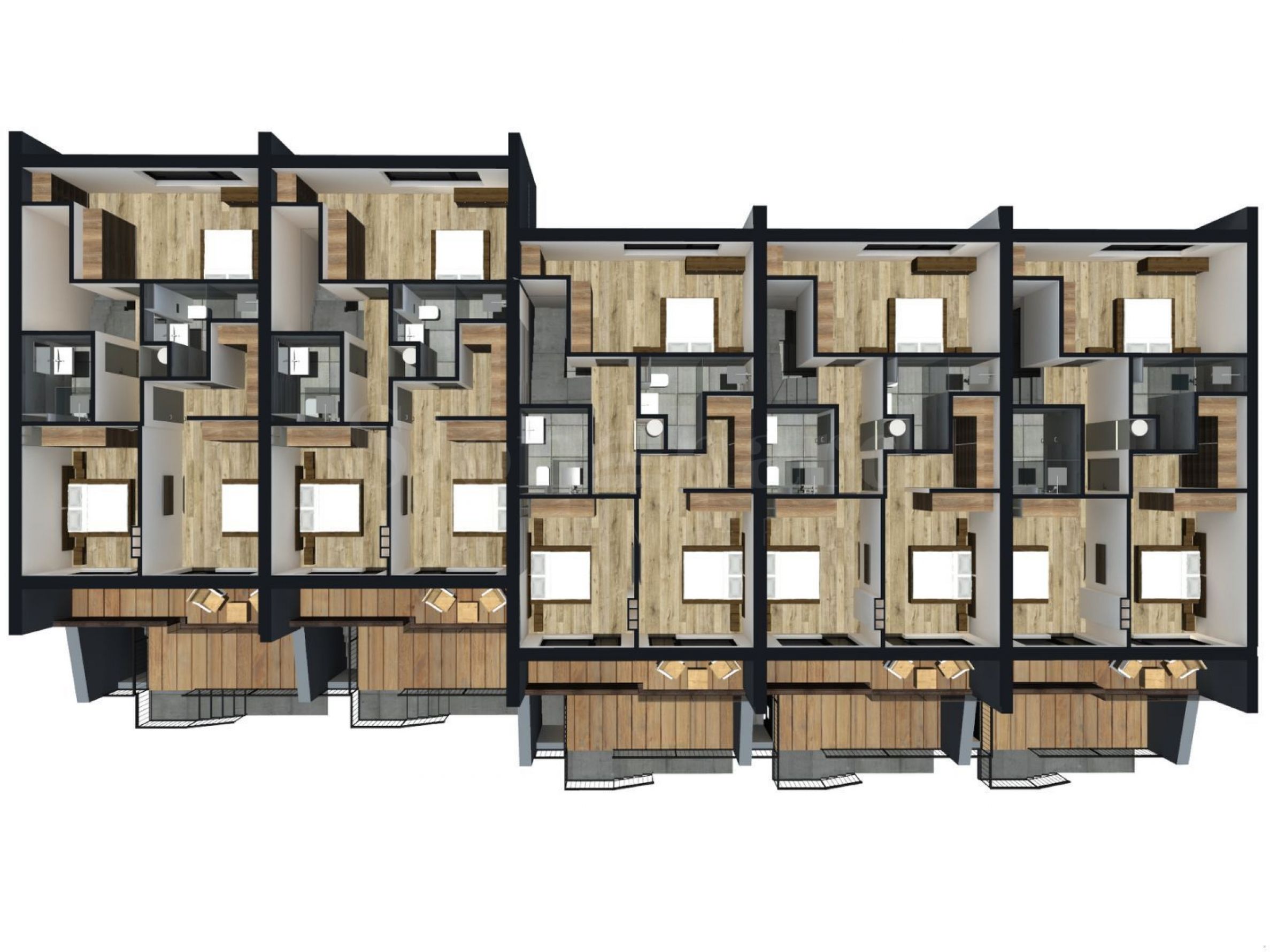 Собствен двор: Площите на дворовете варират от 43 до 167 кв. м, предоставяйки ви пространство за релакс и забавления.