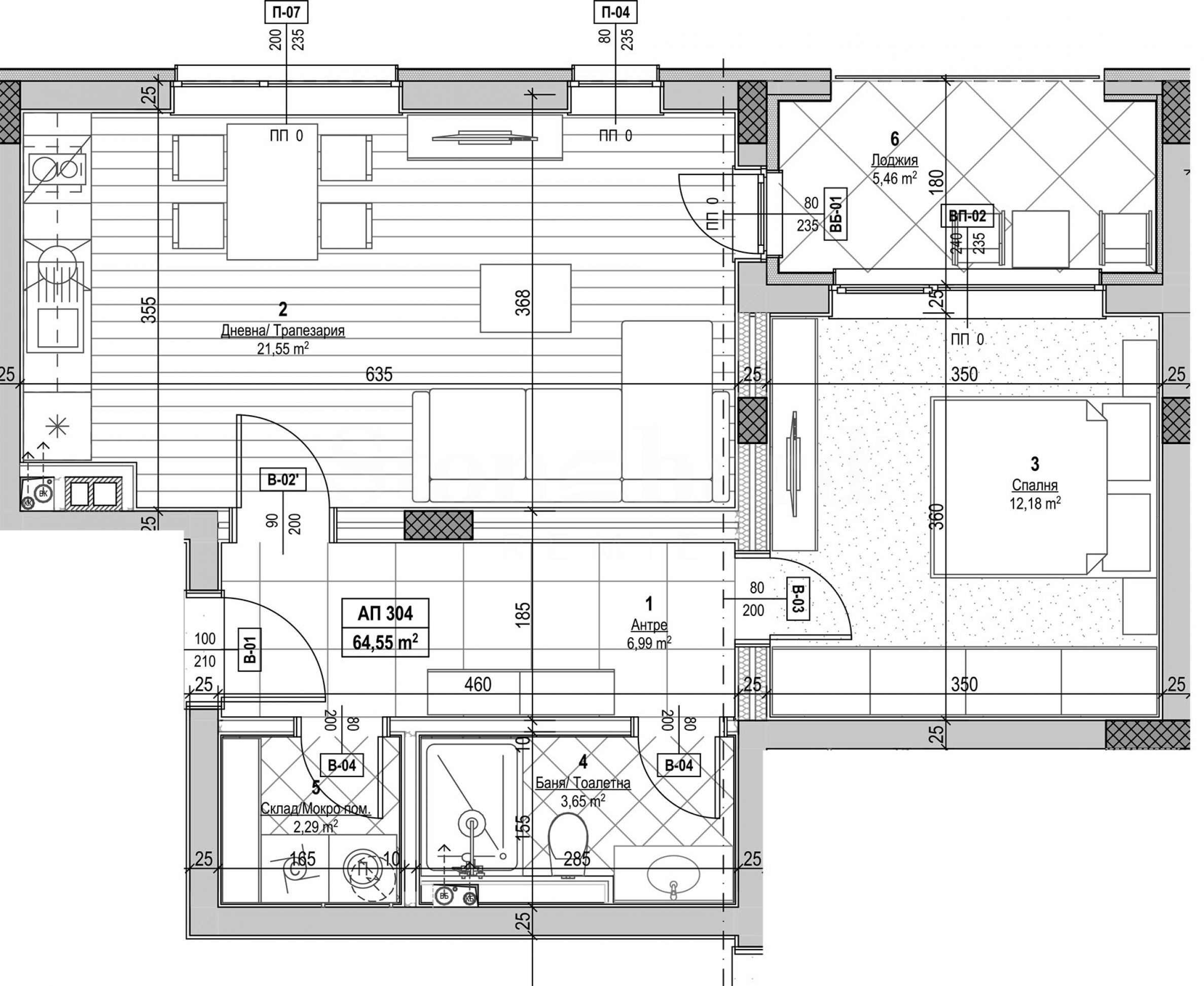 Площи на жилищата: 64.55 м2