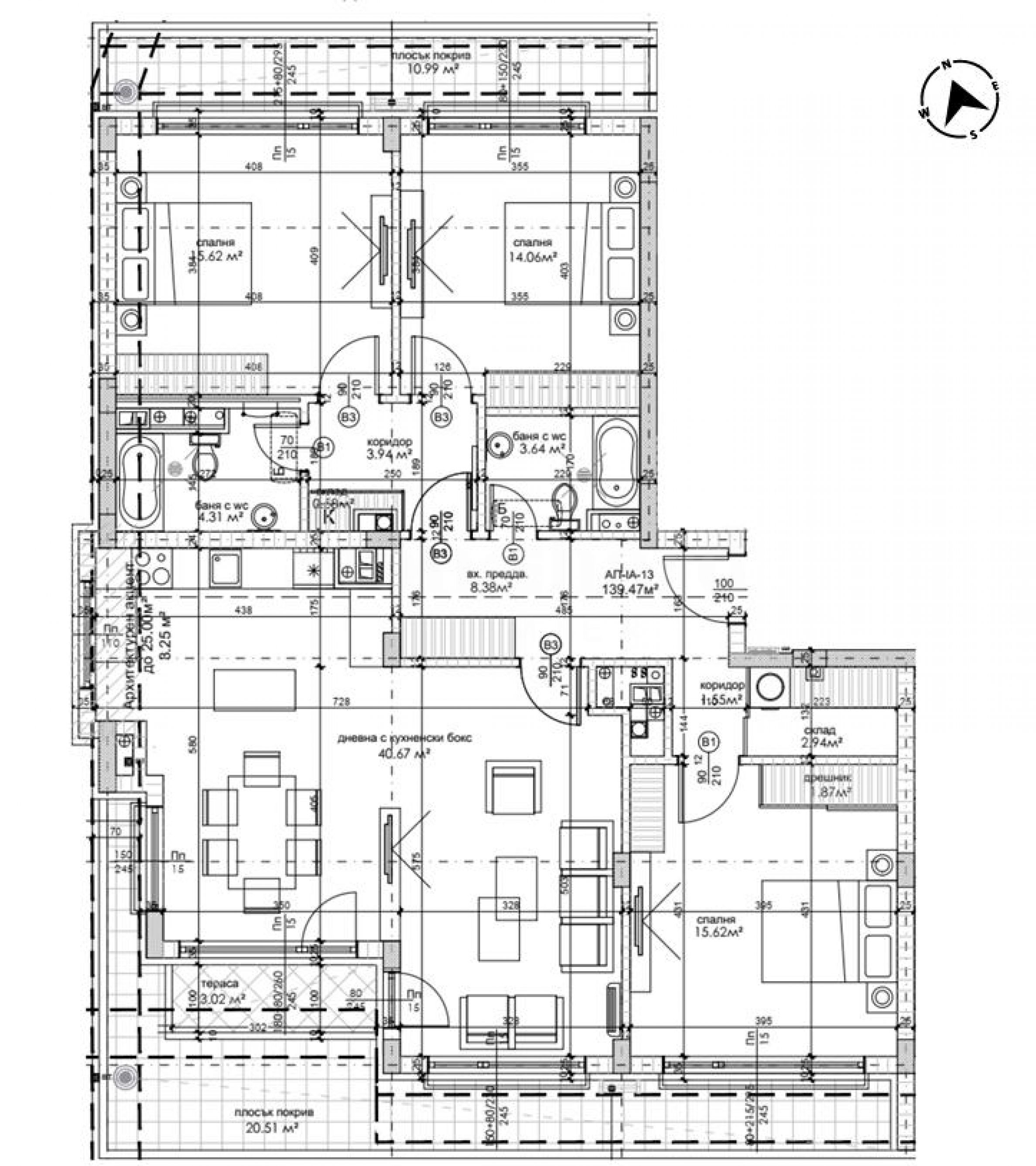 Площи на жилищата: 167.83 м2