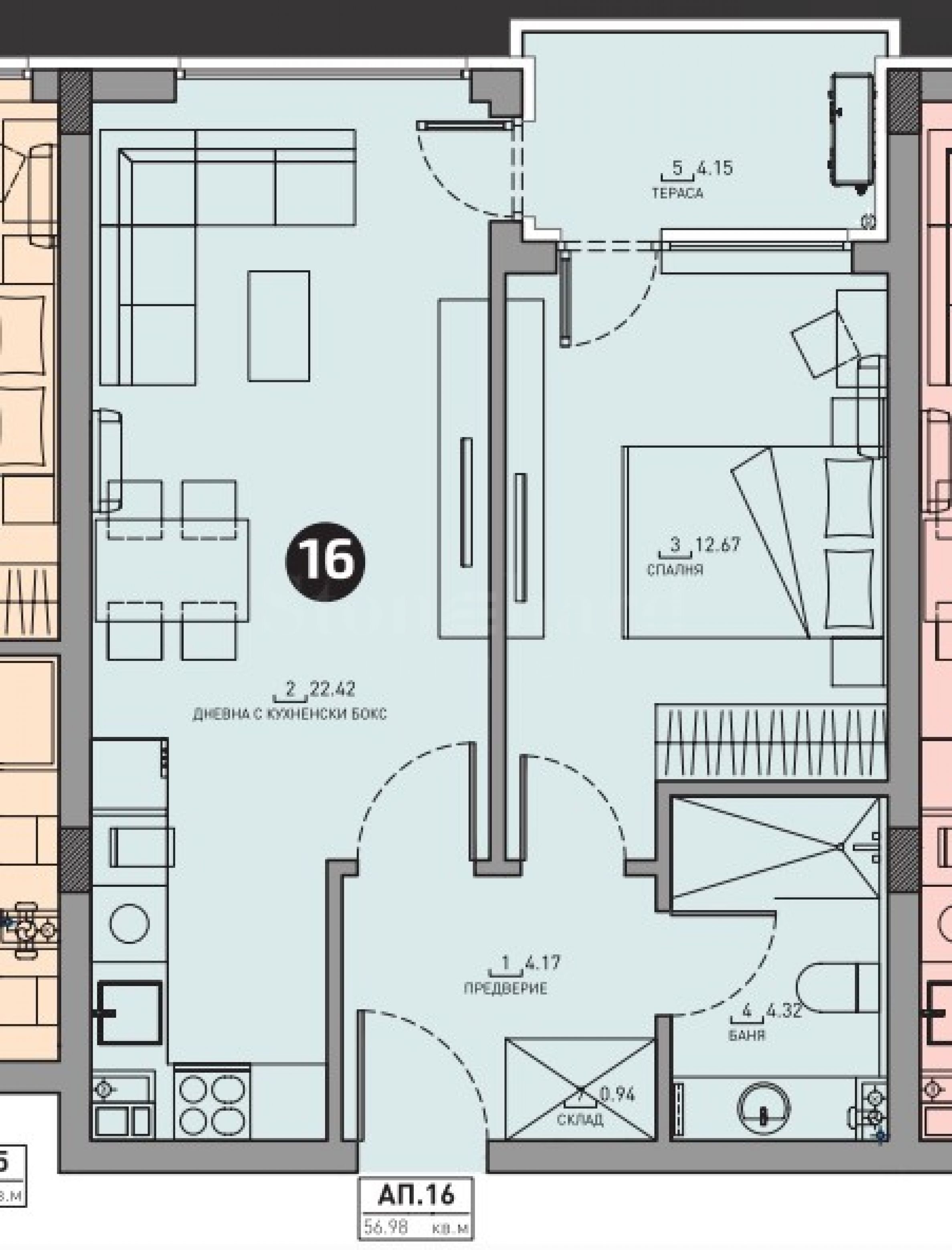 Типове имоти в сградата/комплекса: Двустайни апартаменти