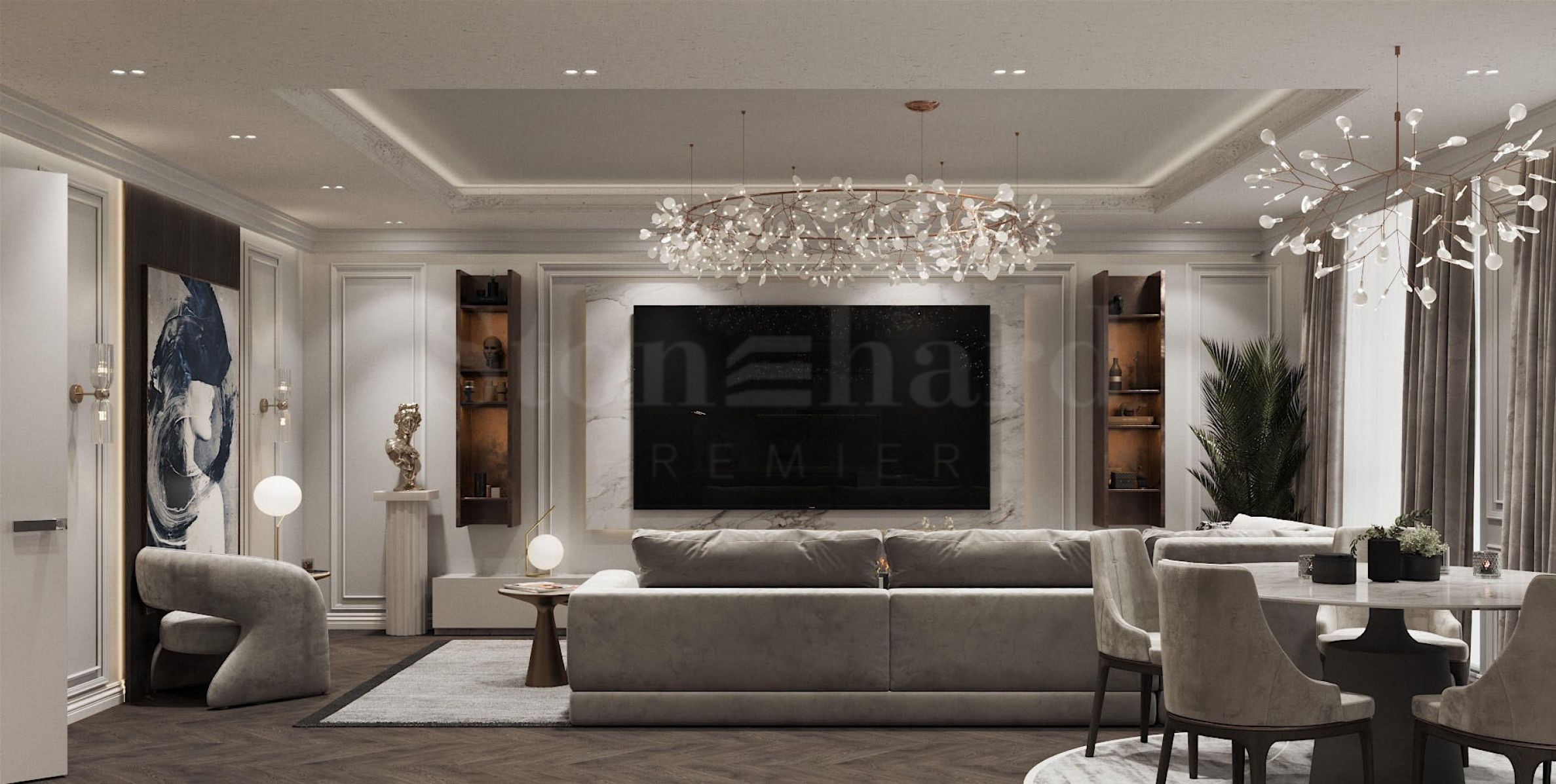 Обзавеждането на снимките е реален дизайнерски проект на конкретни апартаменти и може да бъде изпълнен в този вид на допълнителна цена!