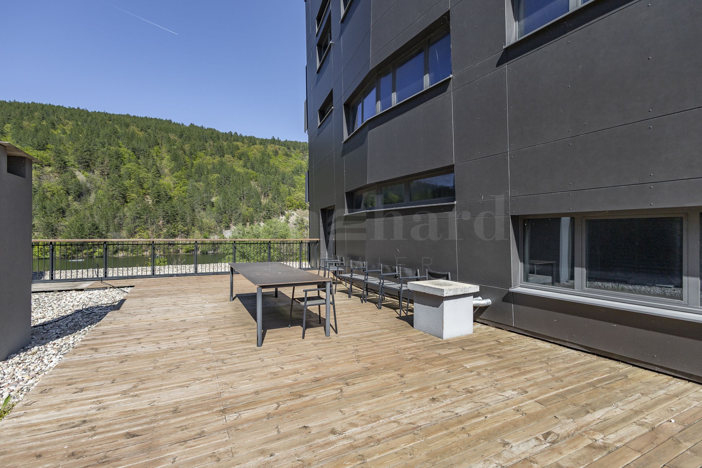 Жилището е разположено на 2-ри етаж в 4-етажна сграда, на първа линия от езерото. Сградата е тип затворен комплекс с охрана.