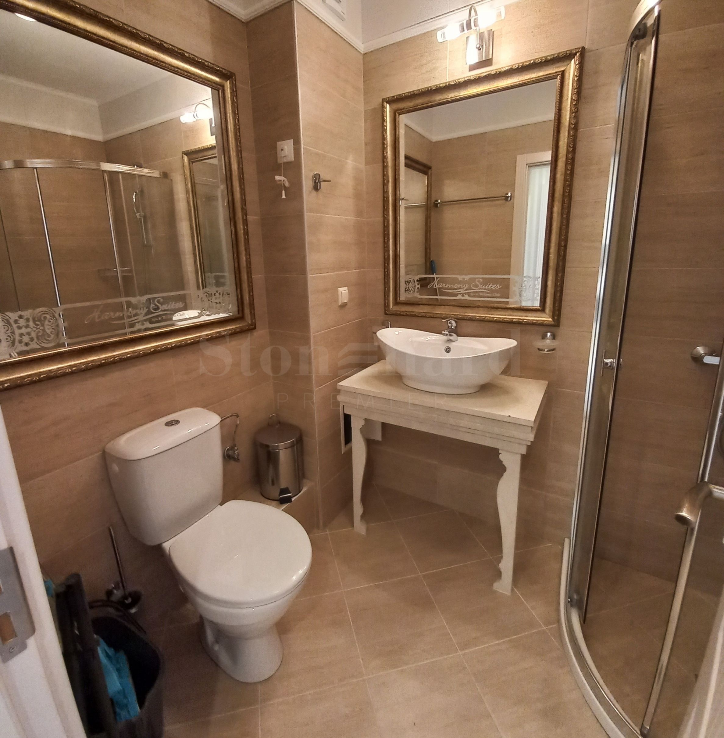Апартаментът е изцяло мебелиран и оборудван, продава се с високо качество мебели и електроуреди.