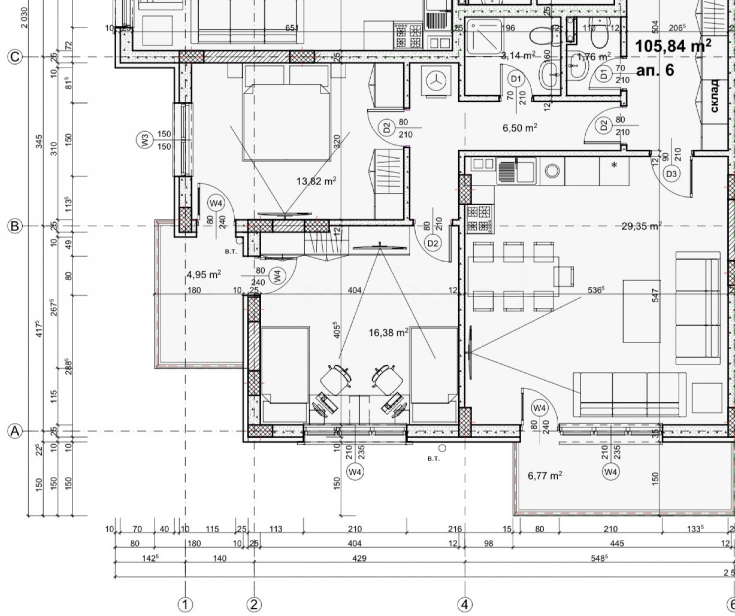 Площи на жилищата: 106.12 м2