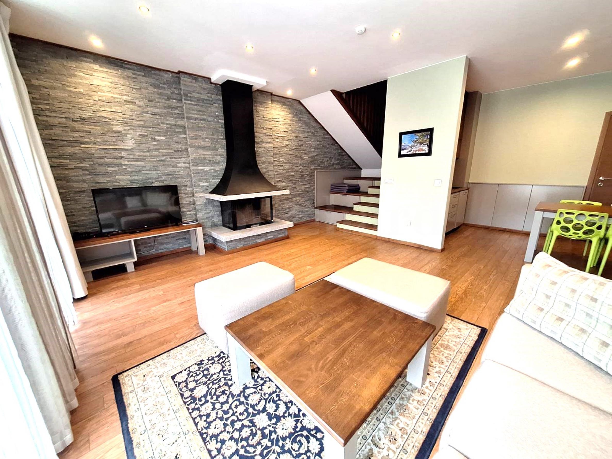 Просторен хол с камина, трапезария, кухненски бокс;