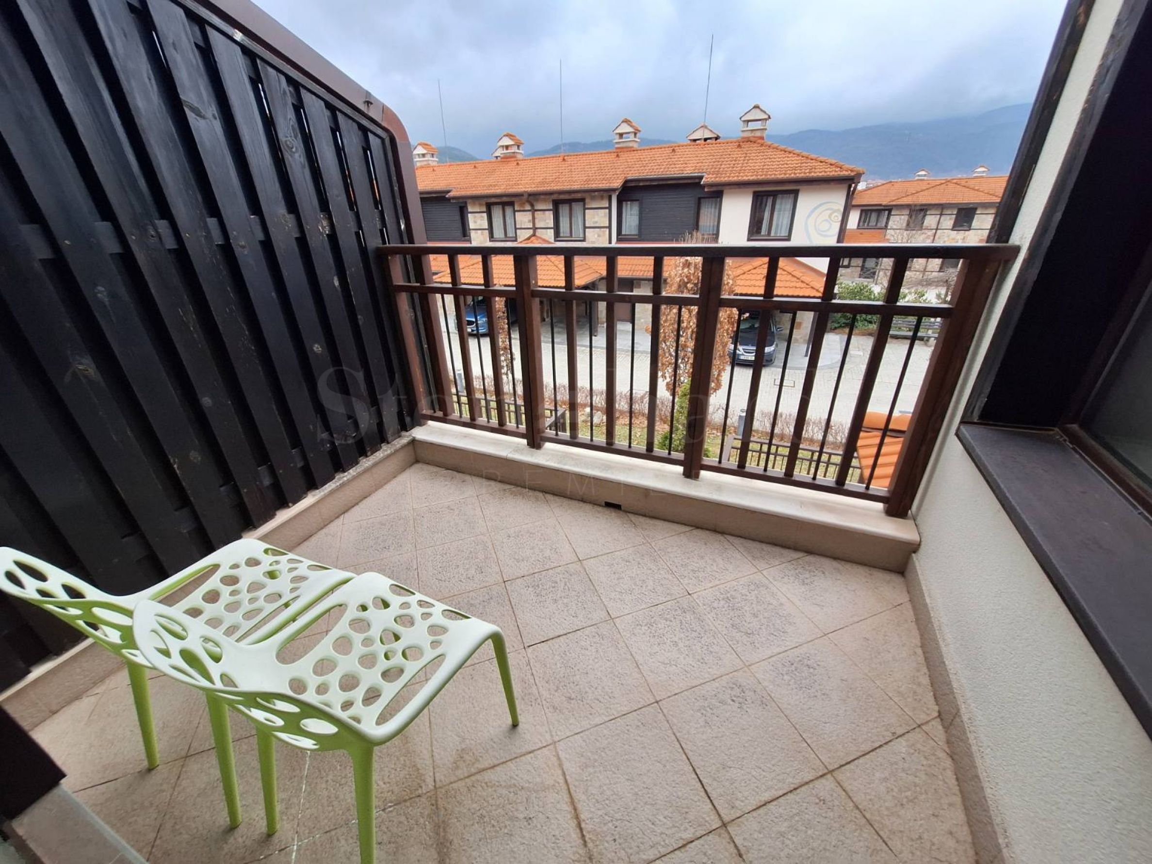 Покрита тераса с южно изложение към една от спалните, с изглед към планината.