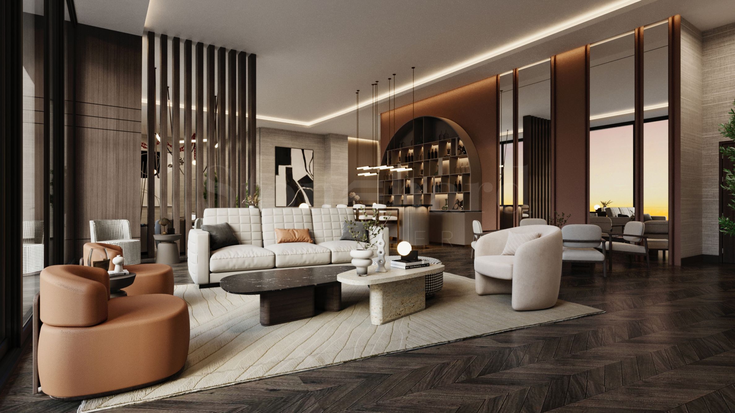 EDGE HOUSE не е просто сграда – това е архитектурен шедьовър. Извисяваща се на 57 етажа, кулата предлага спиращи дъха панорамни гледки към оживения градски пейзаж. Фасадата на първите етажи е украсена с вертикални декоративни елементи, които не само подчертават елегантния ѝ силует, но и ѝ придават отличителен характер. Жилищните нива впечатляват с прозорци от пода до тавана и просторни остъклени тераси, а концепцията live-work-play предлага на обитателите пълноценен начин на живот – от възможности за работа и релакс до активни социални преживявания, без да напускат комплекса.