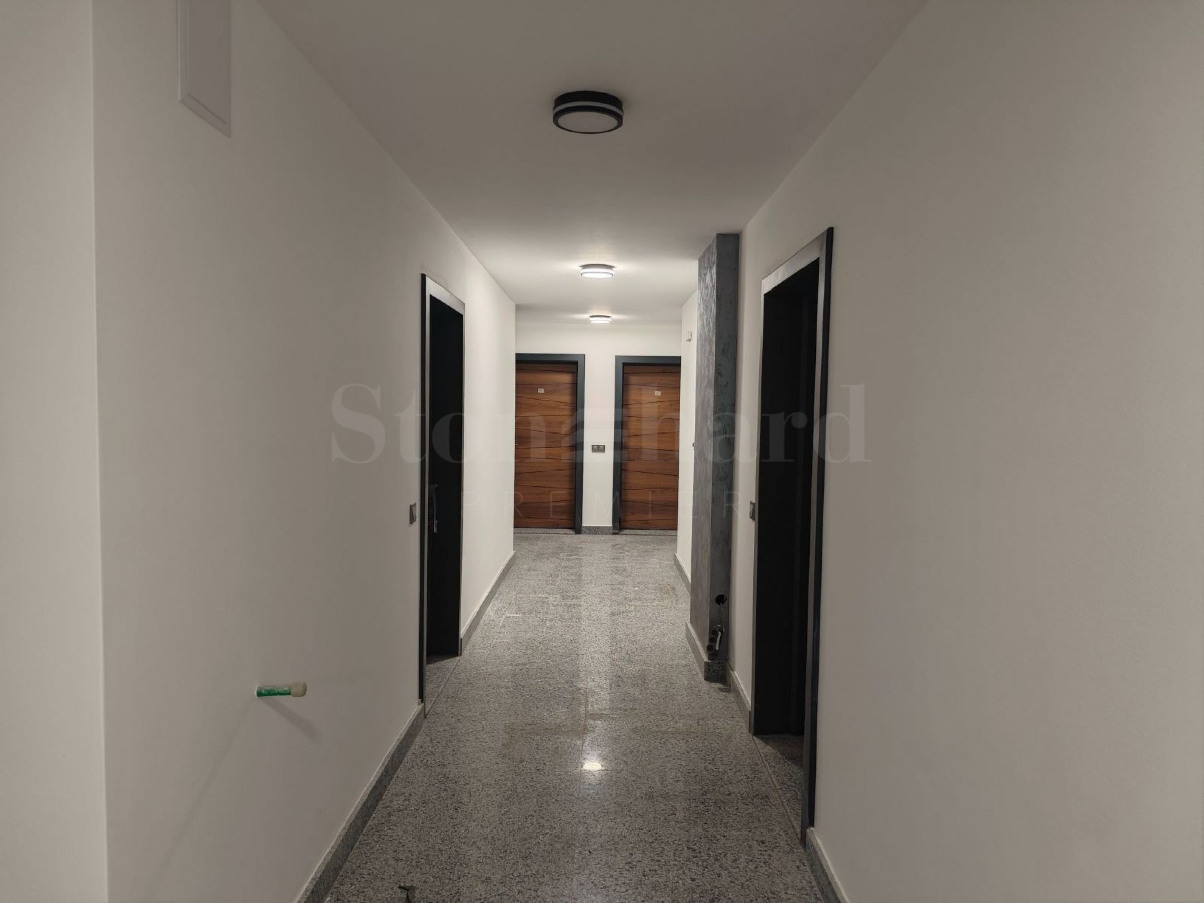 Жилището се предлага в степен на завършеност по БДС, с шпакловани стени с гипсова мазилка, подова замазка, монтирана блиндирана входна врата и завършена ел. инсталация с поставени ключове и контакти.