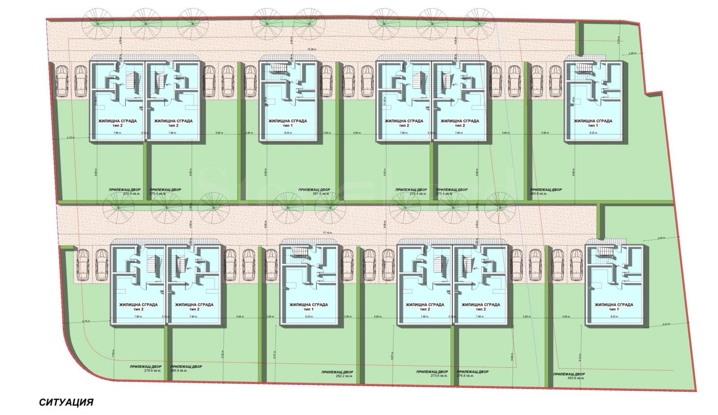 Типове имоти в сградата/комплекса: Къщи-близнак