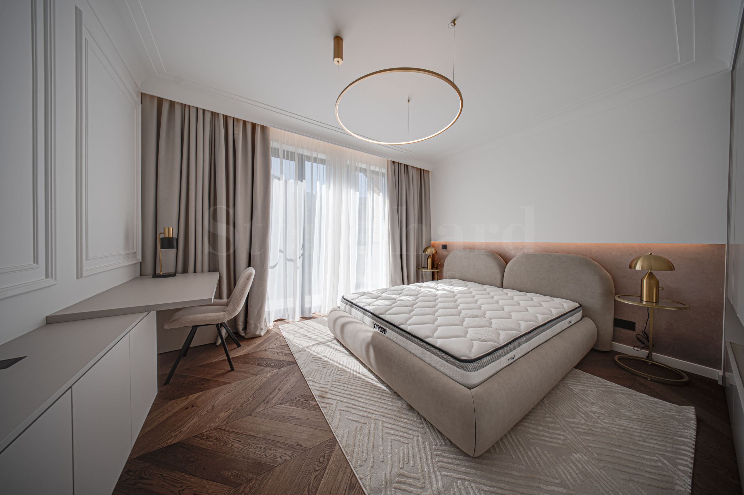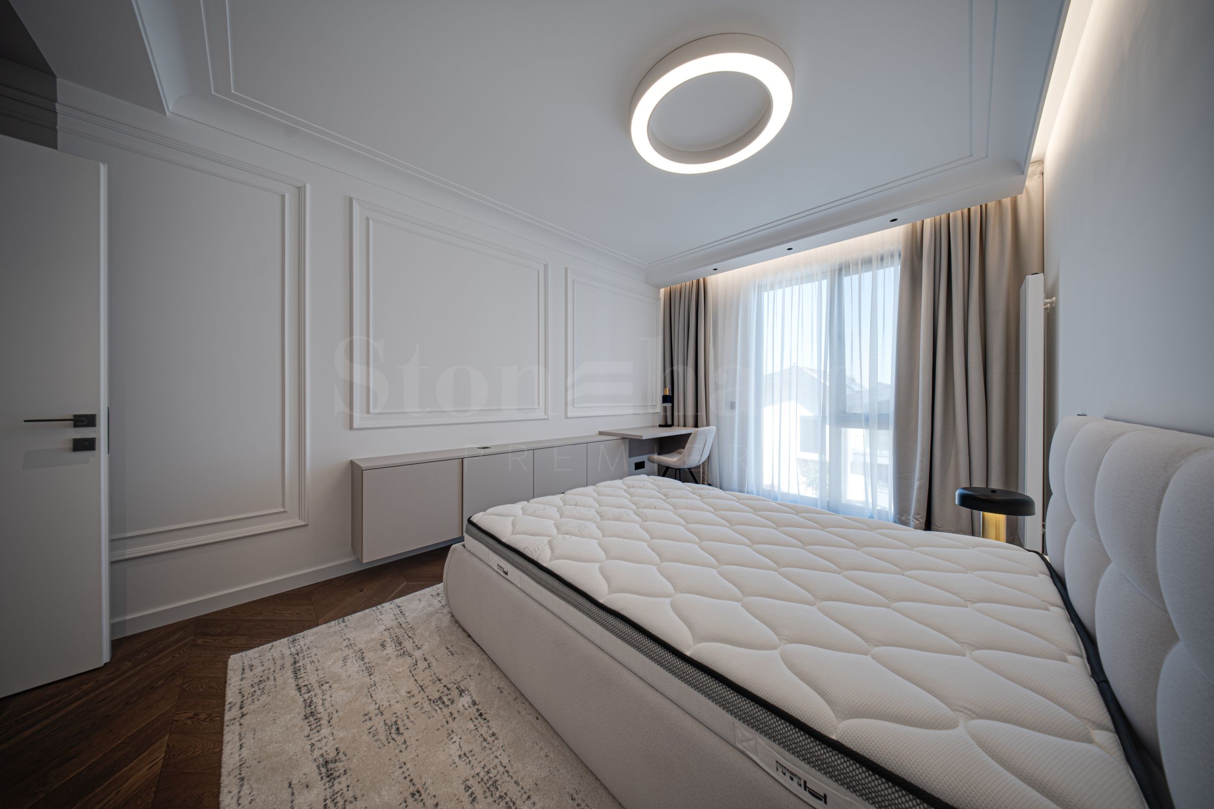 Второ ниво – основна спалня с дрешник и собствена баня с тоалетна, втора спалня с двойно легло, гостна спалня, кабинет (може да бъде използван като допълнителна спалня, наличен е разтегателен диван), баня с тоалетна;