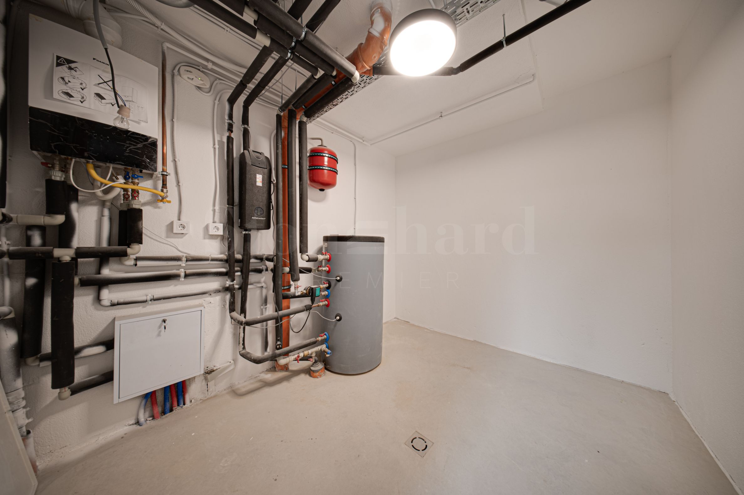 Сутерен – гараж за четири коли (и две външни паркоместа), сервизни и складови помещения. Всички довършителни материали и оборудване са от висок клас: