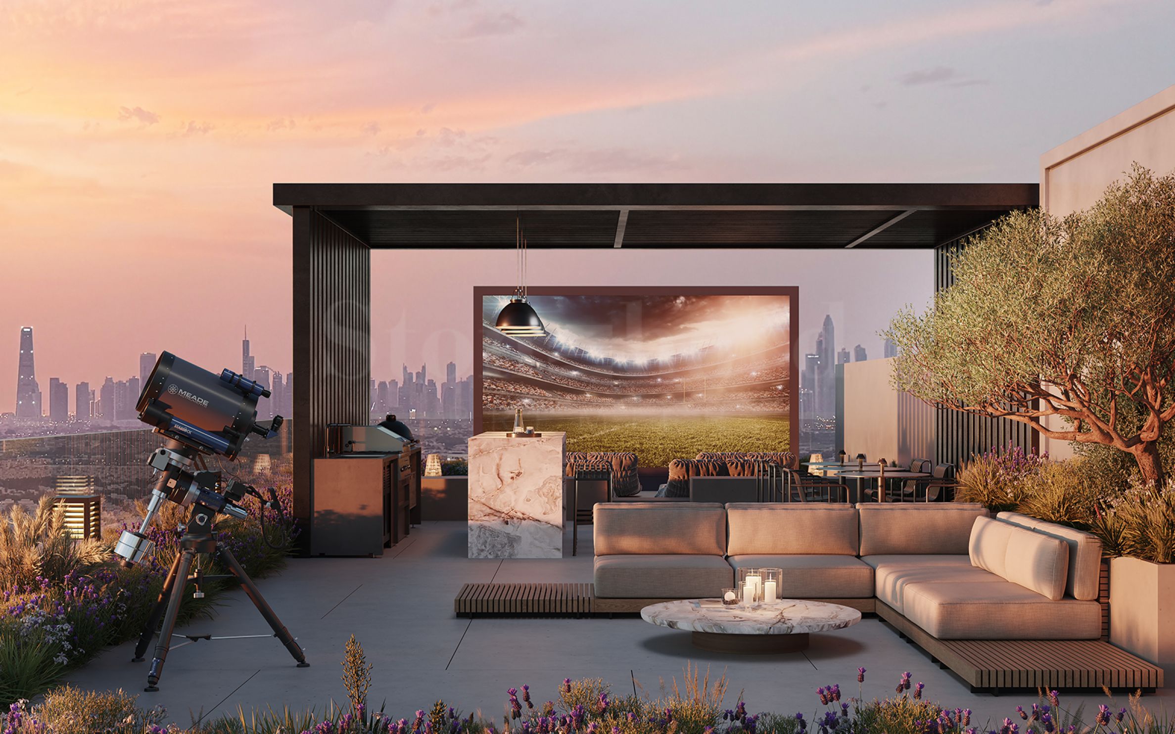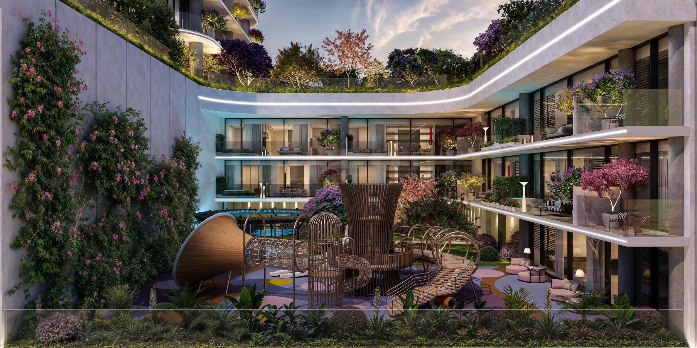 Резидентите на INTERSTELLAR Tower разполагат с впечатляващ набор от удобства: открит басейн с зона за релакс, модерно оборудван фитнес, обособена детска площадка, стилни лаундж пространства, кафене в сградата и дори открито кино – за вдъхновяващи вечери под звездите. Комплексът е проектиран с мисъл за комфорта, сигурността и качеството на живот – истинско убежище в сърцето на модерния Дубай.