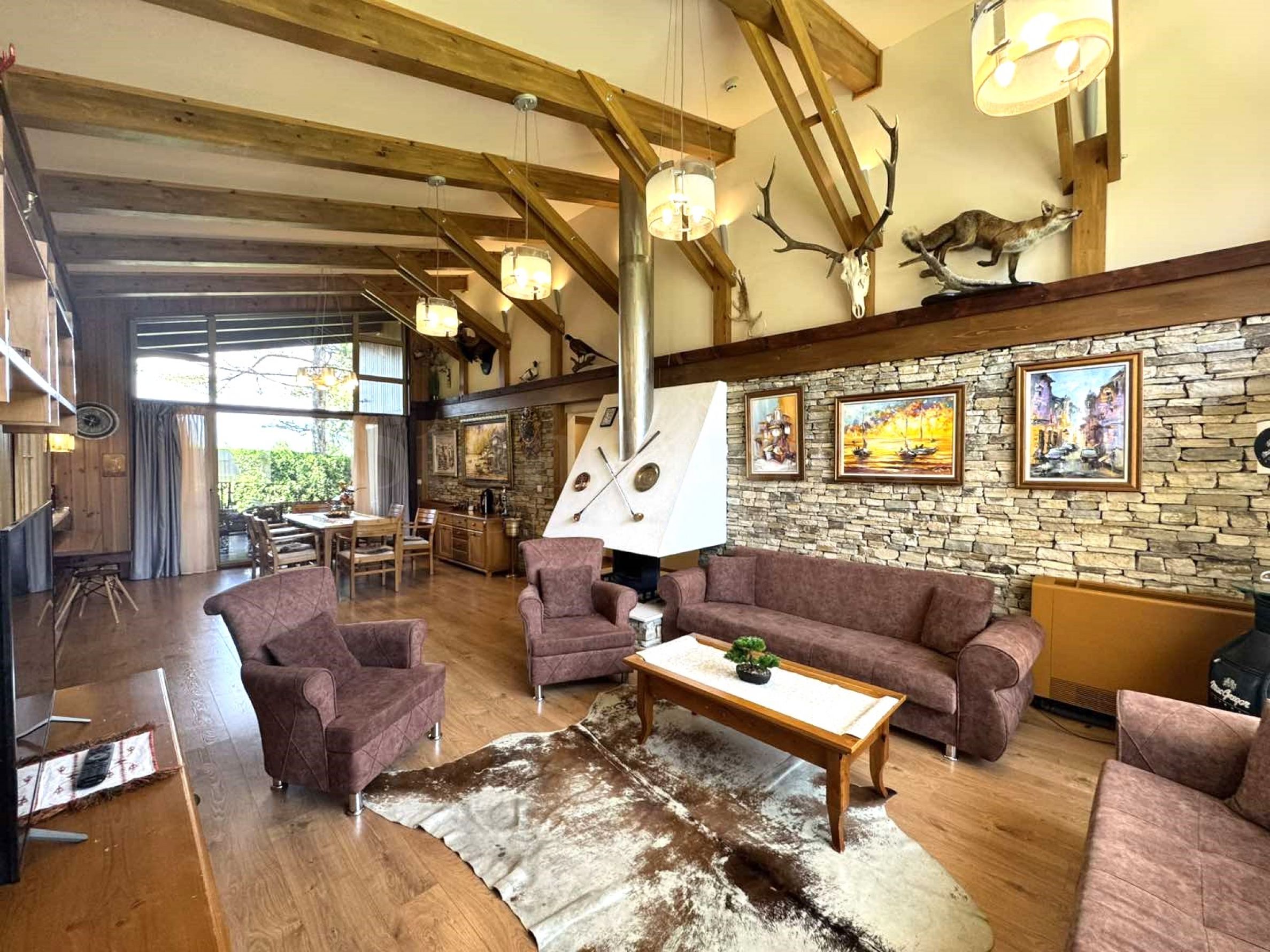 Екстериорът и интериорът са изцяло съобразени с типичния планински стил – дърво и камък.