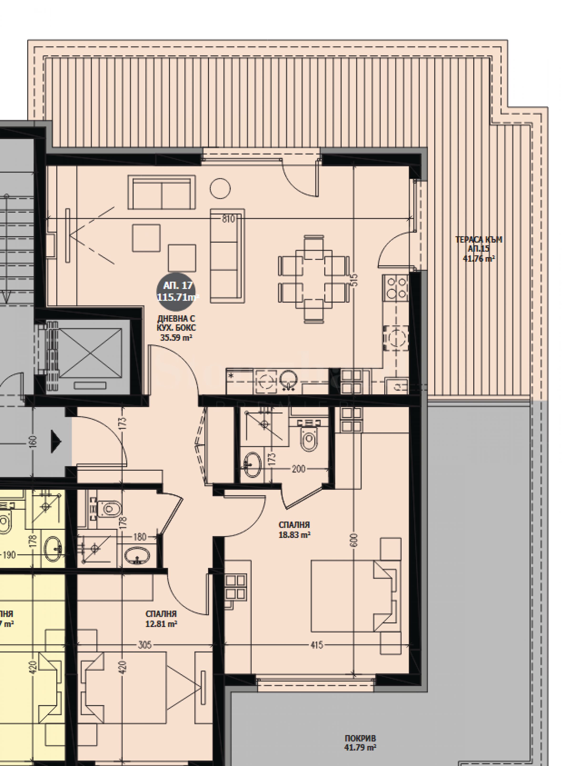 Тристаен апартамент с просторна покривна тераса в кв. "Витоша"