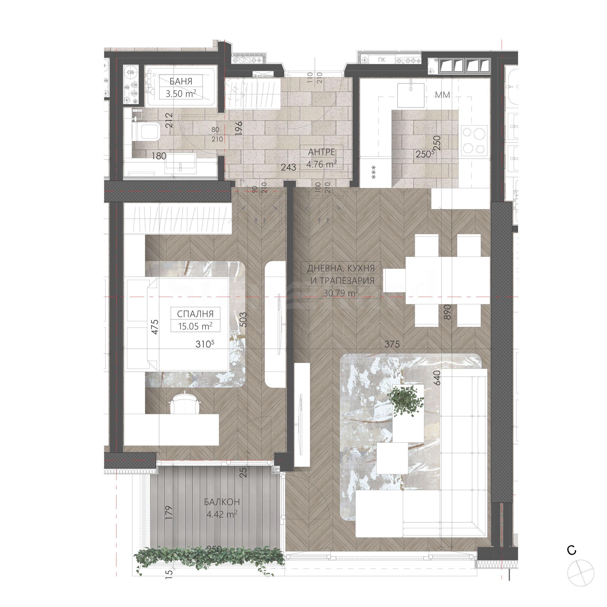 • Окачена вентилируема фасада с широкоформатни керамични плочи и алуминиеви композитни панели – гаранция за дълготрайна защита, устойчивост и съвременна естетика;