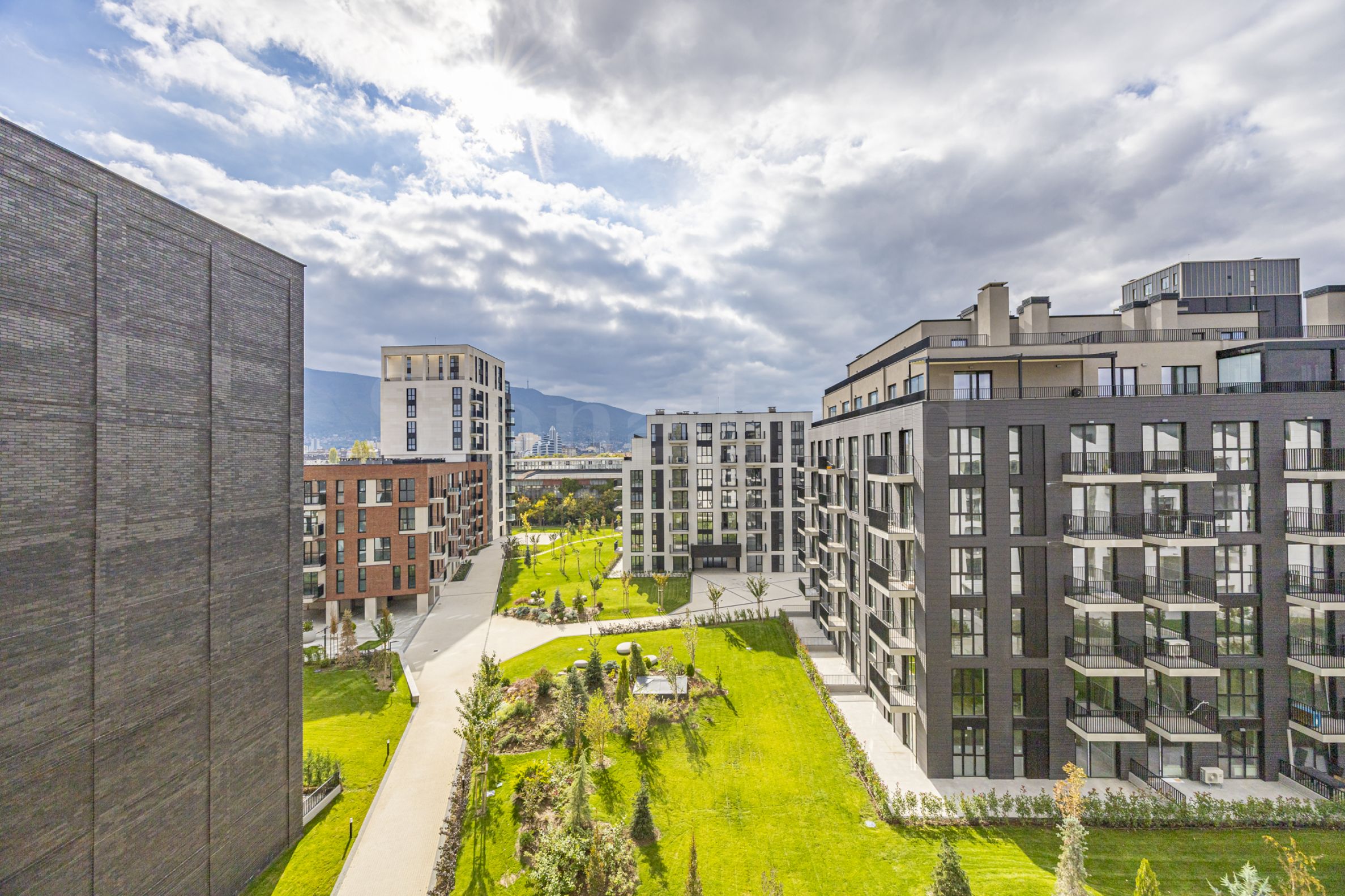 Предлага зелени паркови пространства, без достъп от коли и мотори и детски площадки.