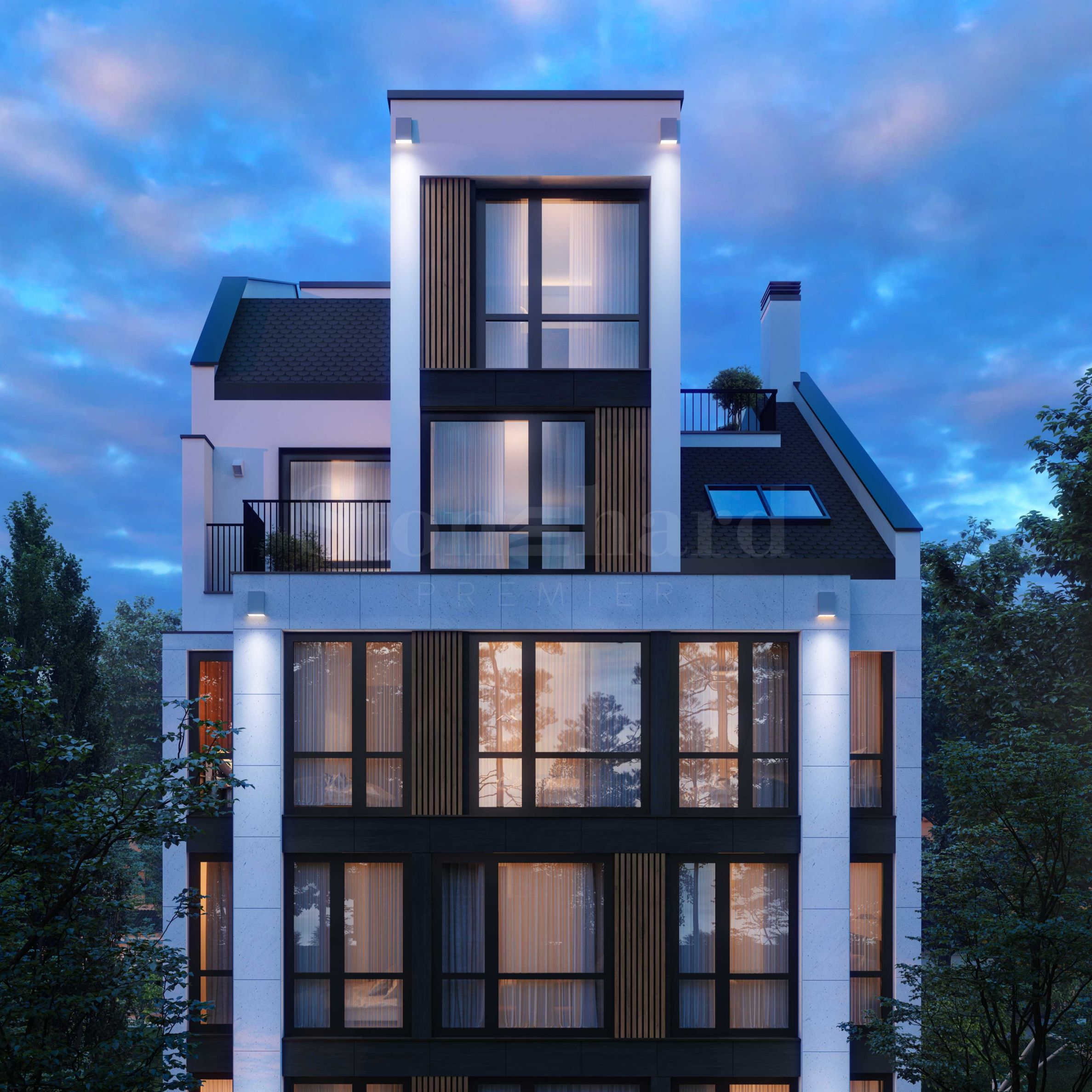Сградата впечатлява с архитектура, която съчетава съвременен дизайн, прецизна детайлност и материали от най-висок клас. Линиите са чисти и елегантни, а цялостната визия носи усещане за динамика, стил и градски лукс. Фасадата е проектирана с вентилируема система, широкоформатни керамични плочи и структурна мазилка, подбрани заради тяхната издръжливост, естетика и енергийна ефективност. Тези премиум решения не само подчертават модерния характер на сградата, но и гарантират дългогодишна устойчивост и безупречен външен вид. Архитектурните акценти и внимателно подбраните материали създават хармонична композиция, която превръща проекта в отличителен и престижен дом – истински еталон за градско строителство от висок клас.