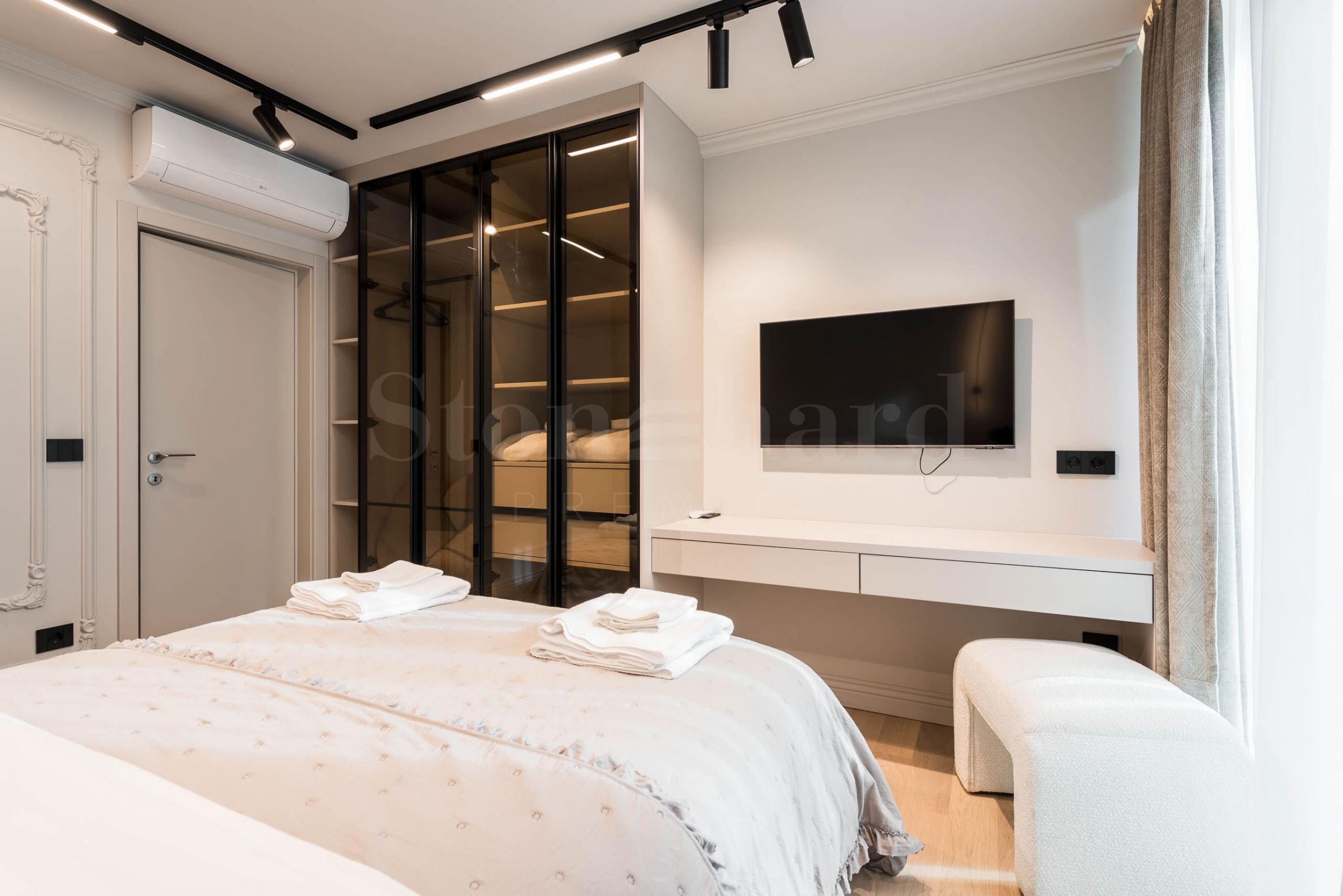 Апартаментът е напълно обзаведен и оборудван с качествени и функционални мебели, които са включени в цената. Всички довършителни работи са изпълнени с качествени материали, произведени от реномирани компании.