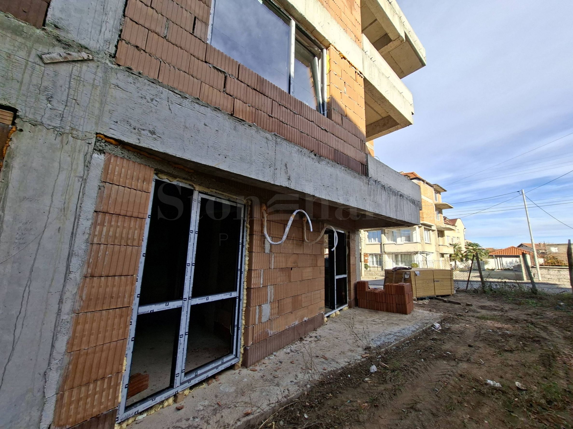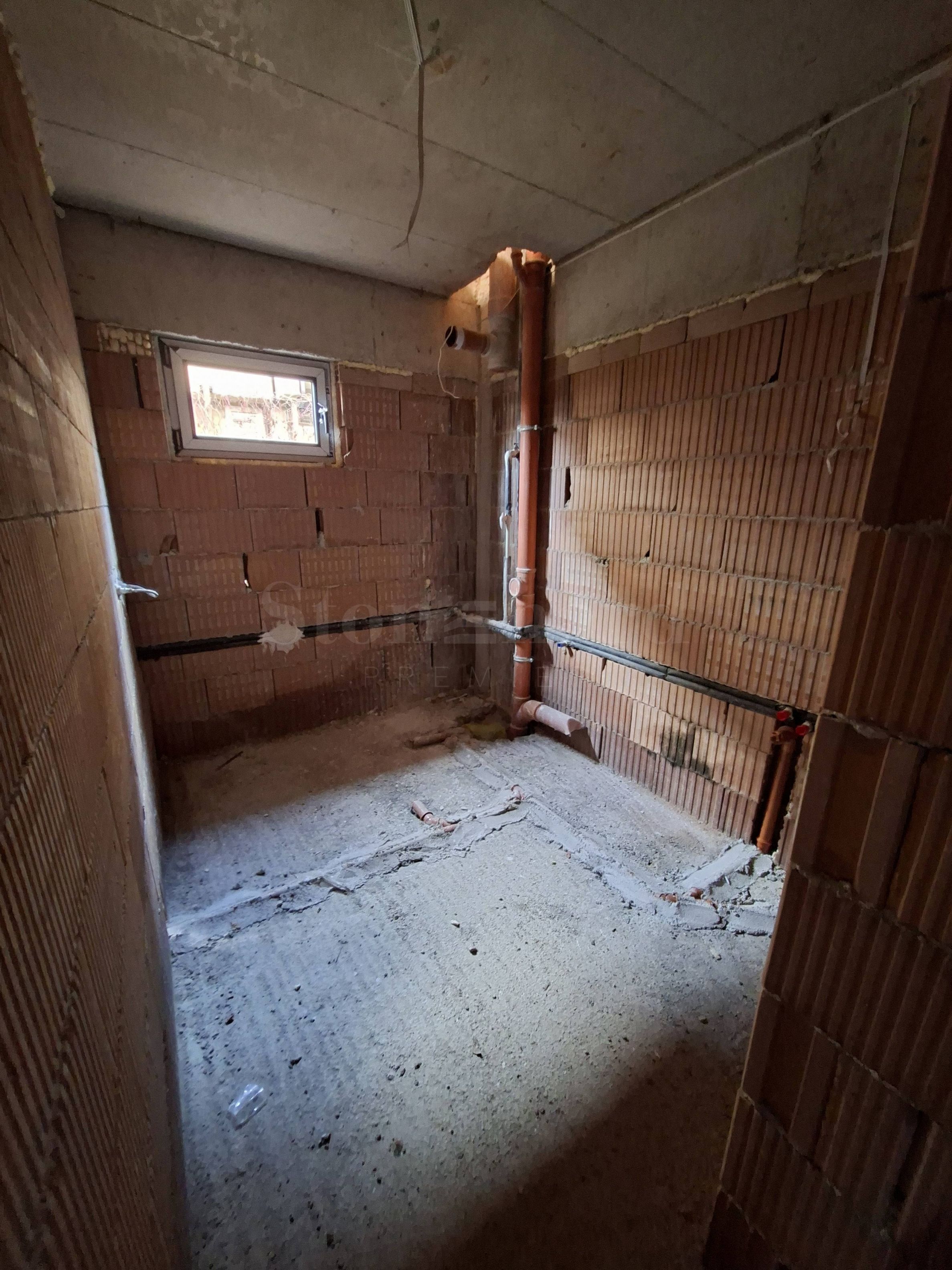 • вътрешни стени: тухлена зидария, мазилка, фина шпакловка и бял латекс.