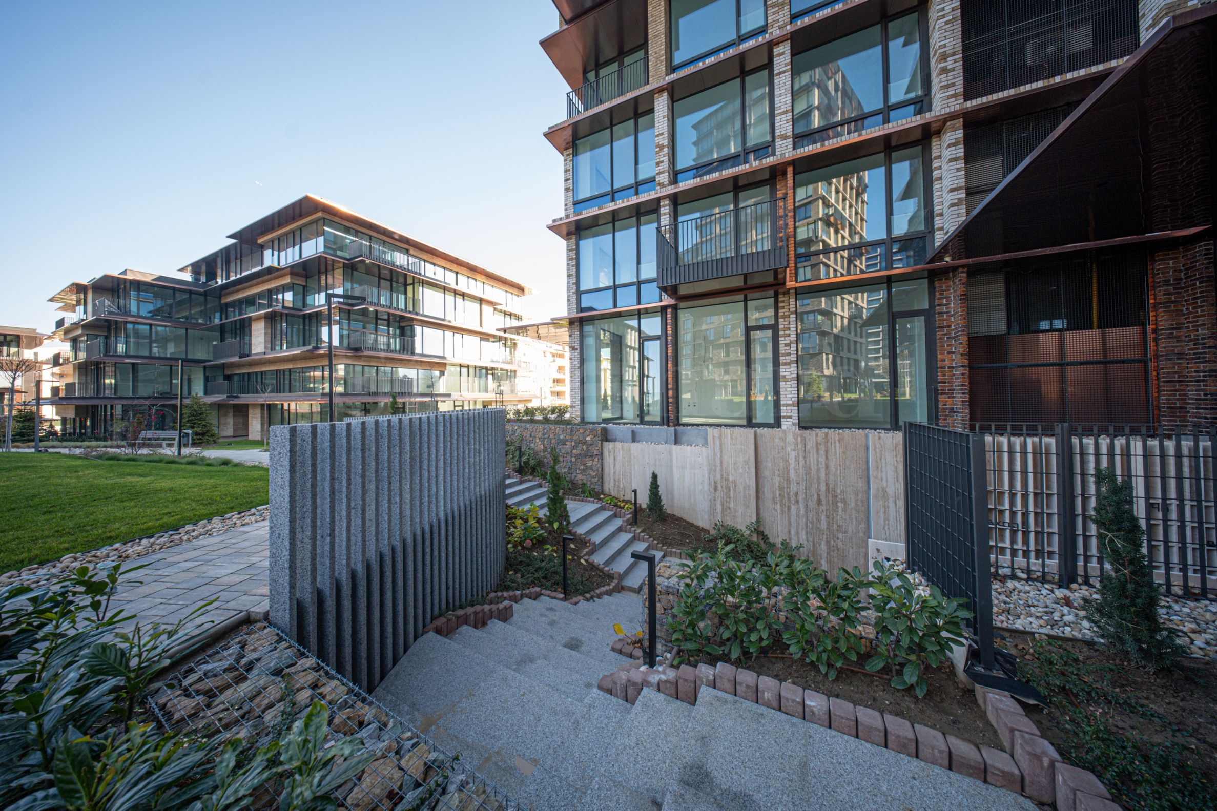 Комплексът предлага допълнителни удобства – партерните нива са обособени като йога център, търговска зона и бистро, които допринасят за комфорта и модерния начин на живот на обитателите.