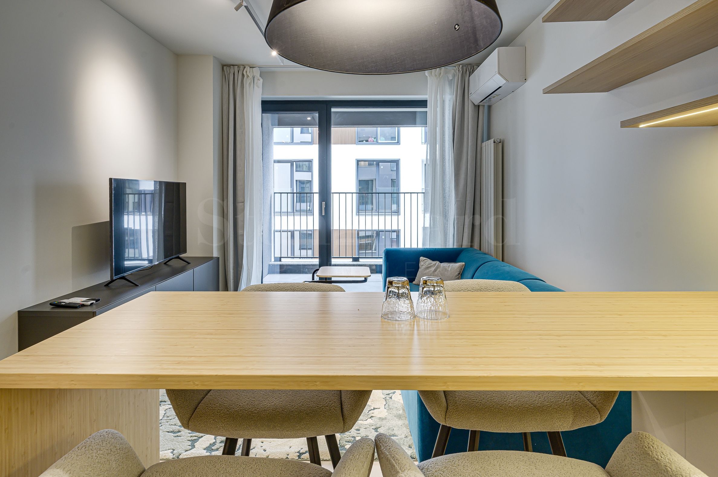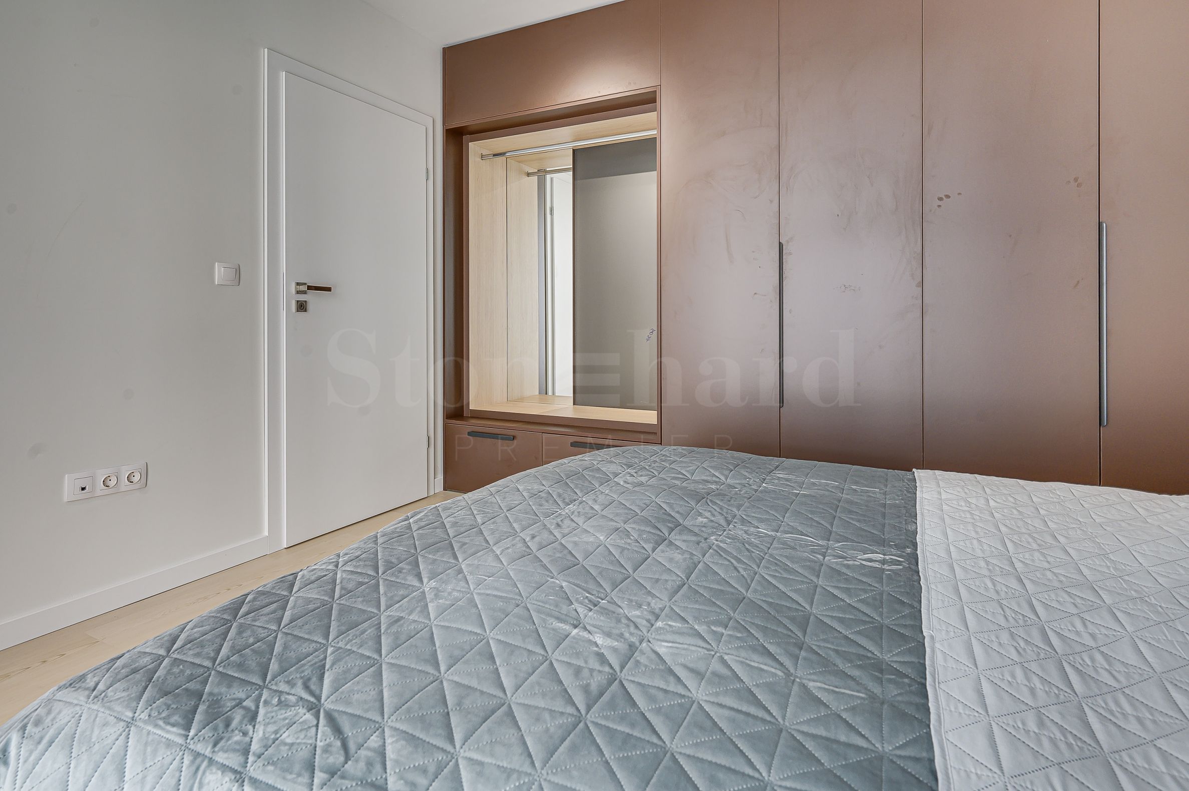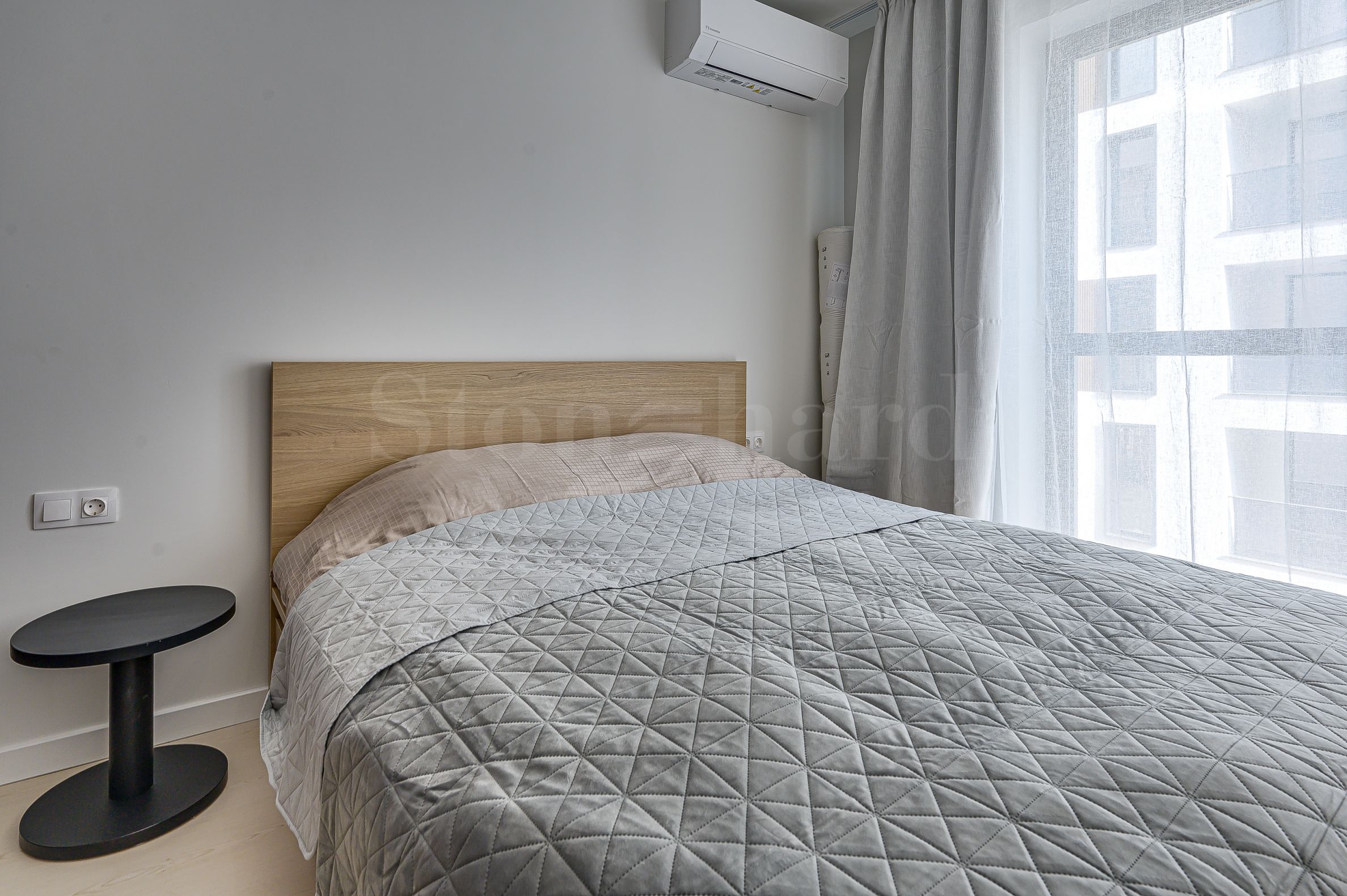 Апартаментът е реализиран по индивидуален проект – всичко е ново, подбрано с внимание към детайла и усещане за елегантен минимализъм. Пространствата са балансирани и функционални.