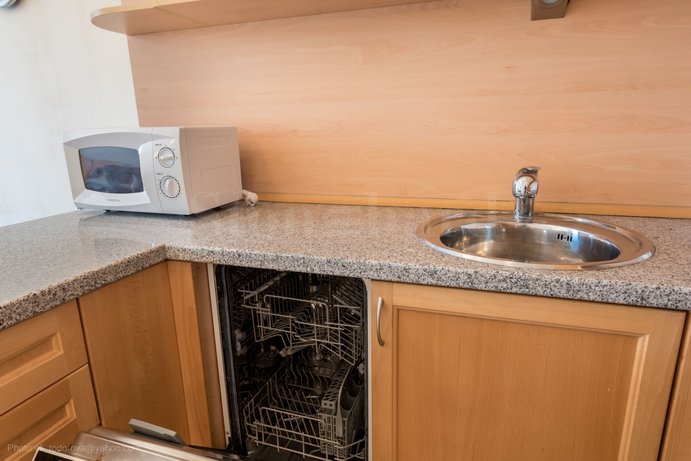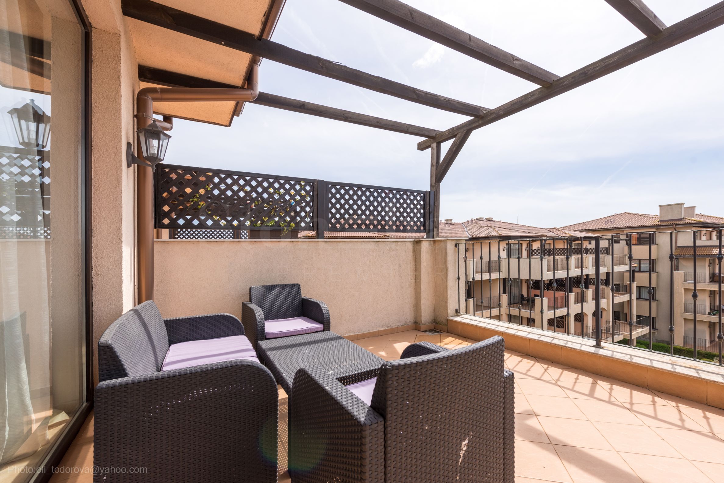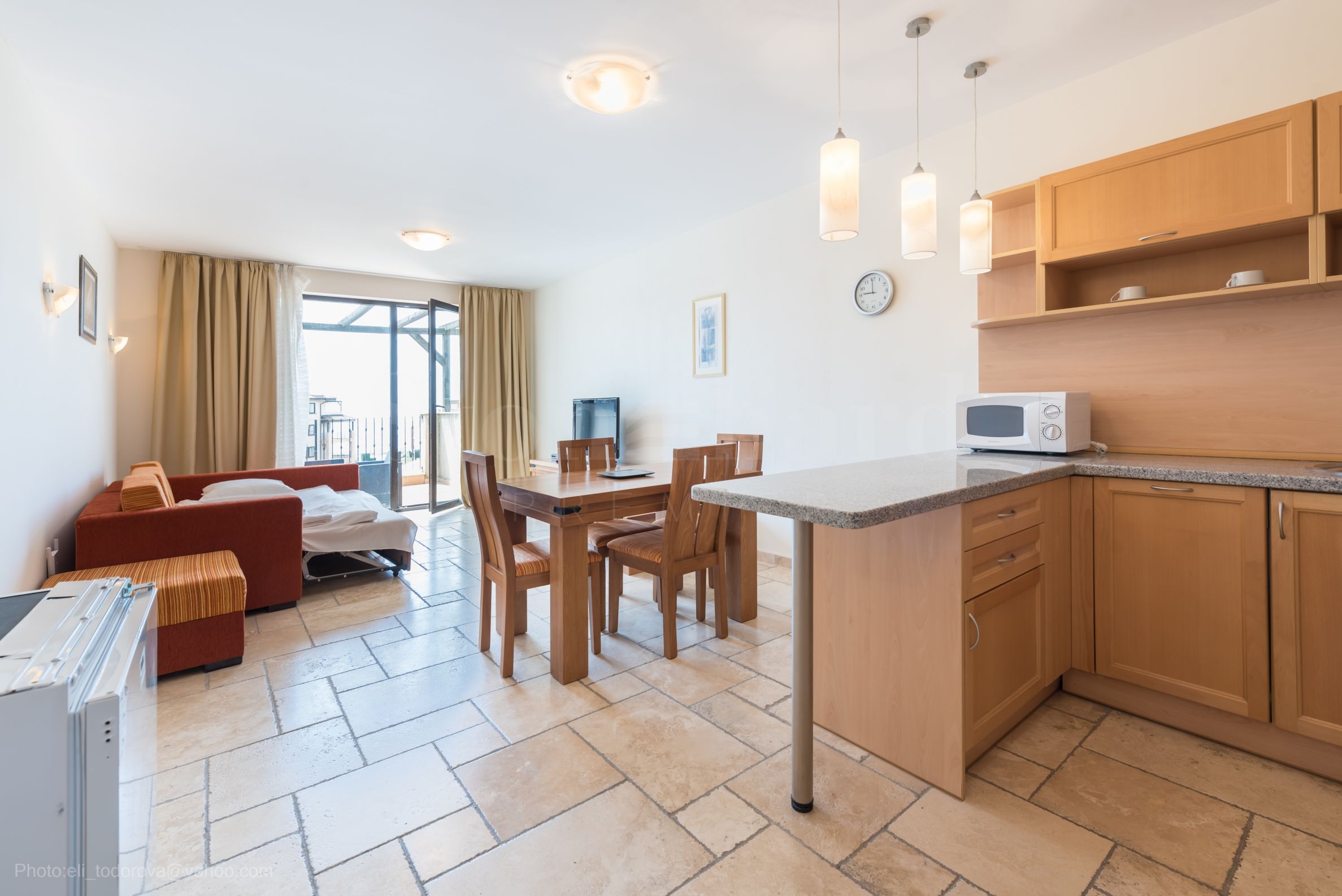 Byt se nachází v posledním patře, obývací pokoj je orientován na moře na východ, ložnice na západ.
