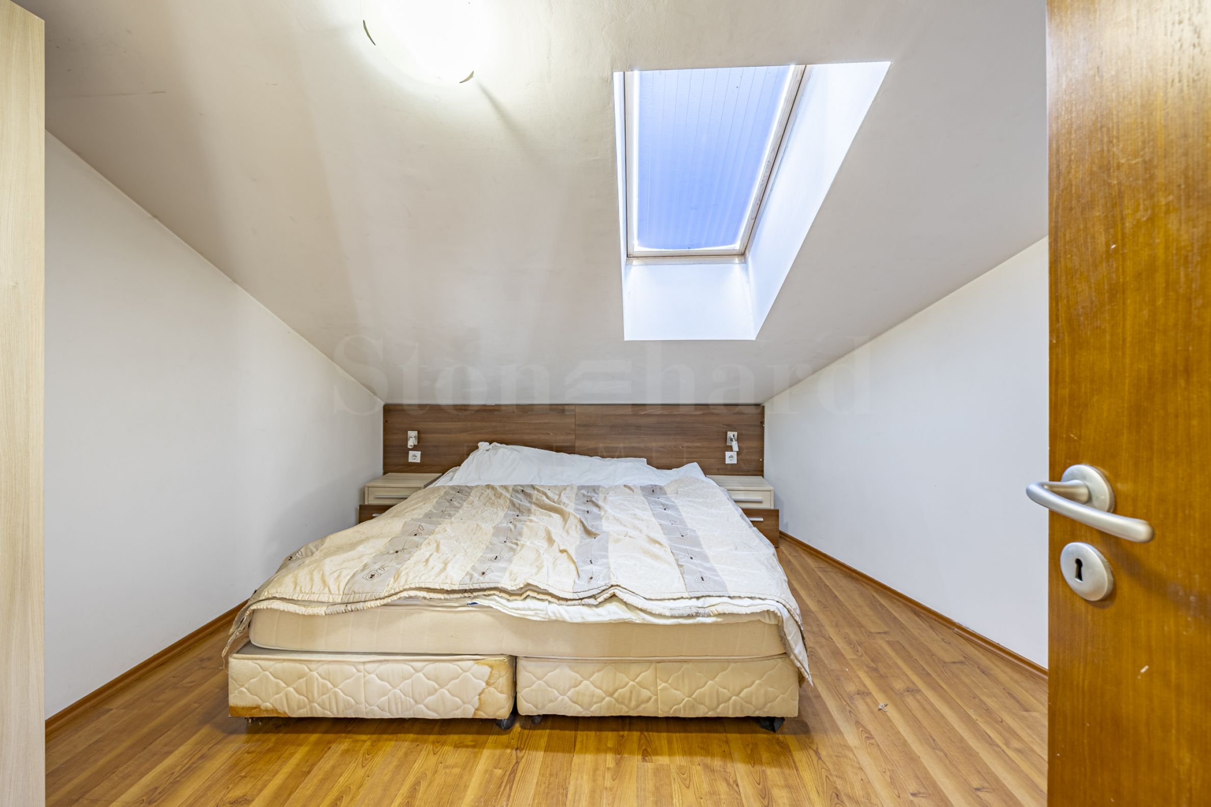 Byt se nachází v 5. patře a nabízí celkovou plochu 72,51 m², pohodlně rozloženou v prostorném obývacím pokoji, dvou ložnicích, koupelně s toaletou a také dalším prostoru pod šikmými stropy.