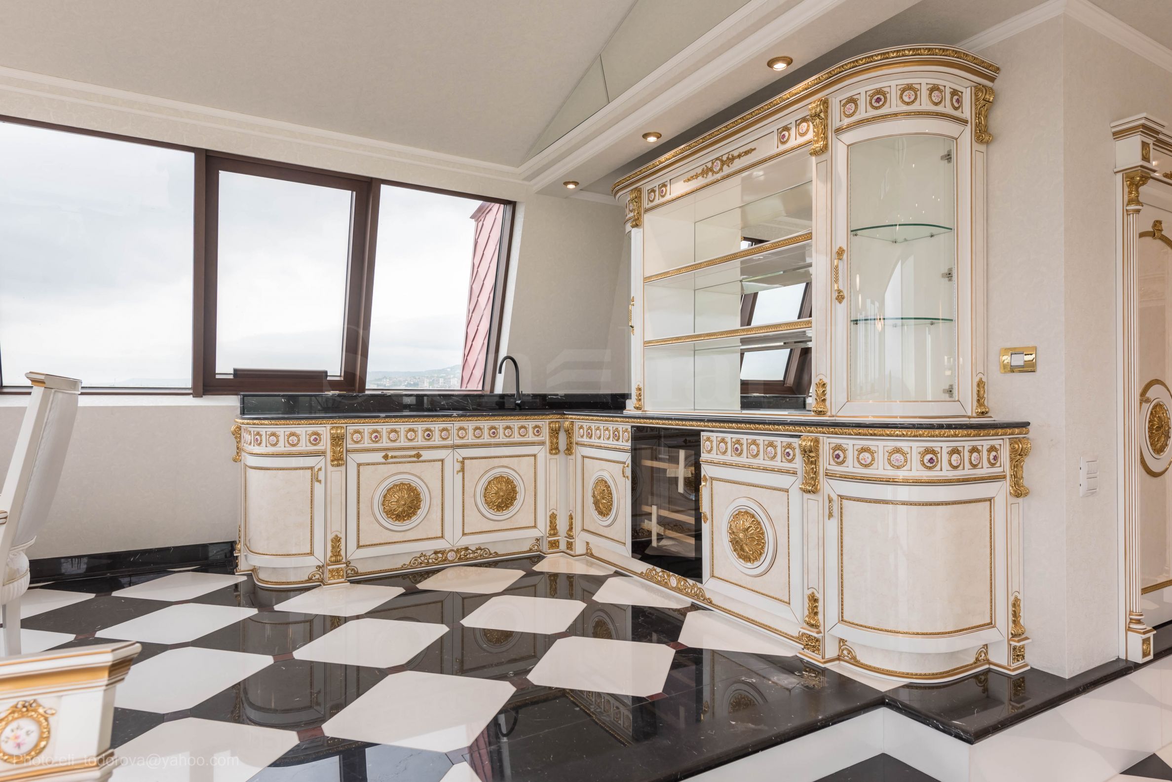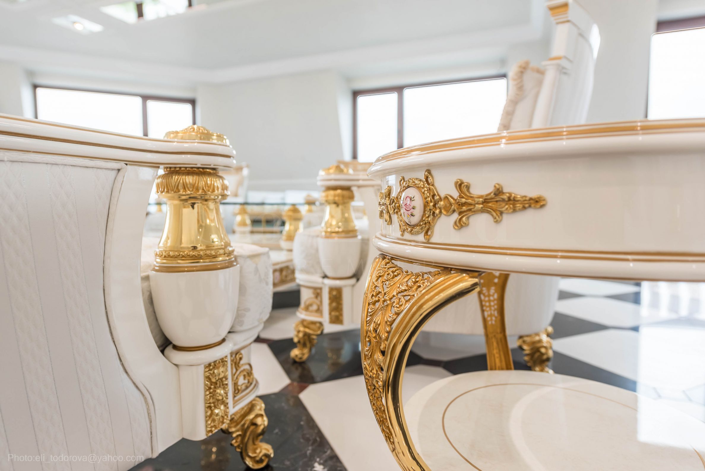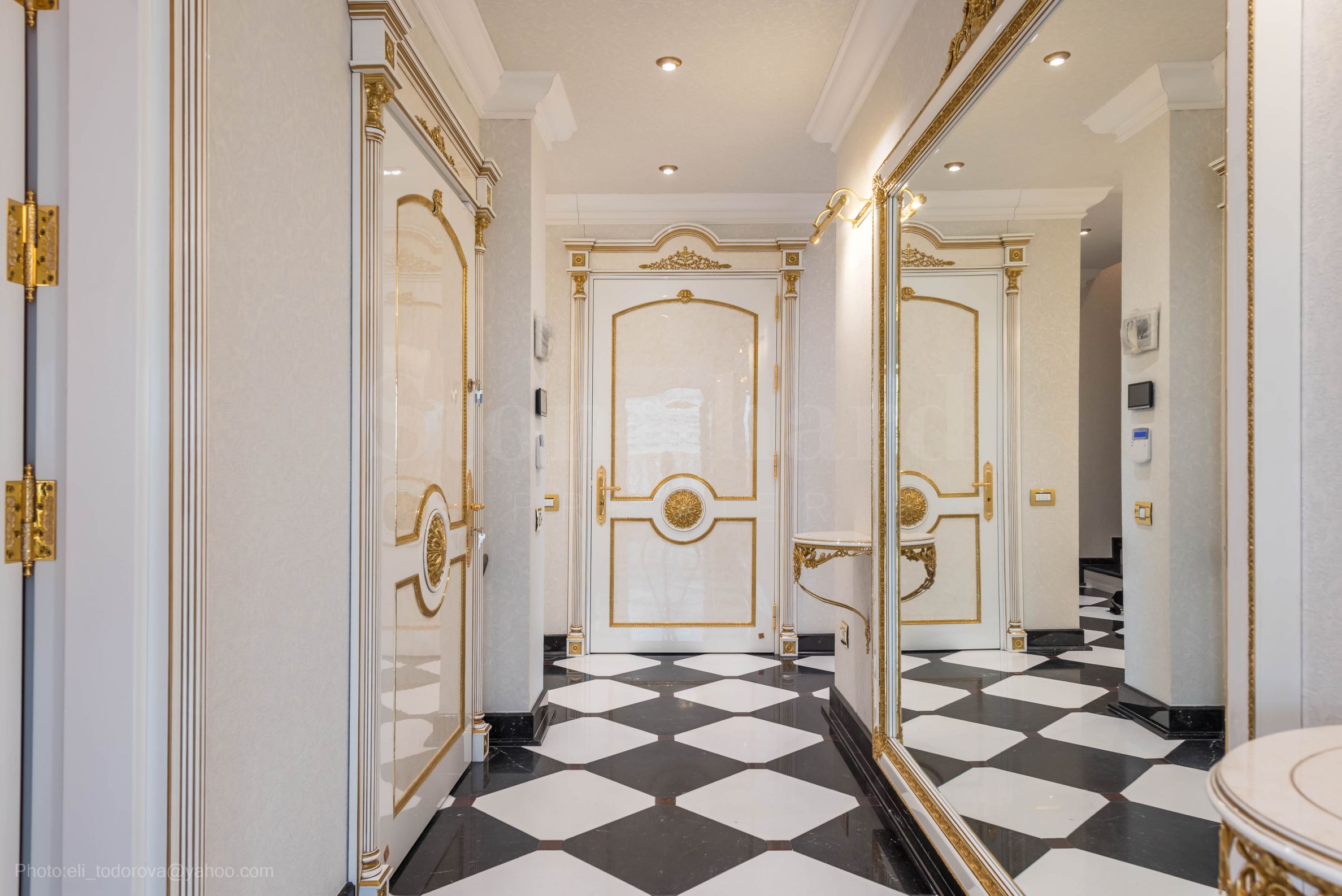 Interiér je jemný, světlý a harmonický, skutečná inspirace francouzskou klasikou, nabízející neuvěřitelnou "bílou symfonii", s převládajícím zlatým zdobením nábytku a stěn v celém objektu. Jedná se o exkluzivní nemovitost s charakterem - skutečný aristokratický soubor mezi historickým duchem epochy a moderním světem.