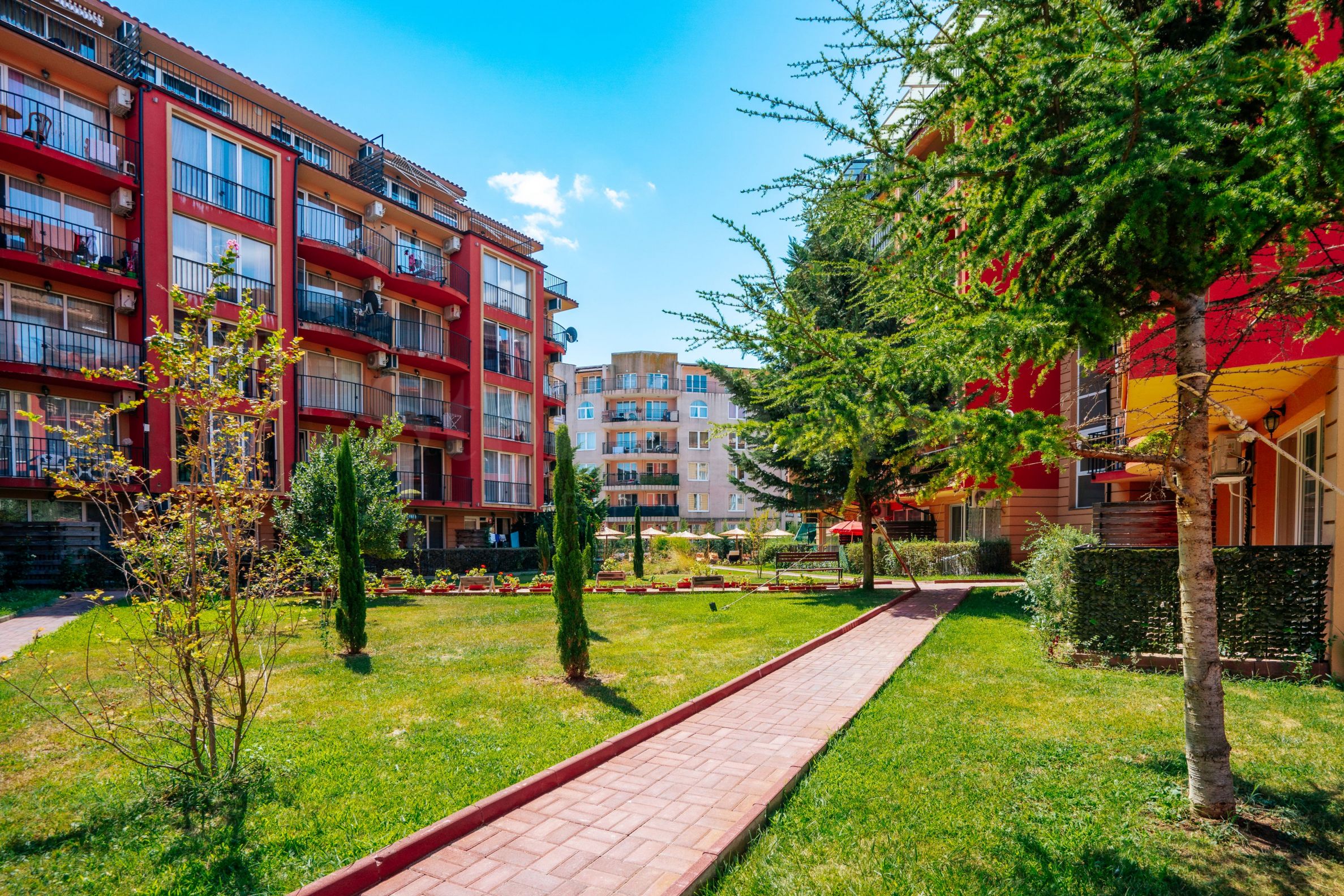 Dvoupokojový apartmán v uzavřeném komplexu 500 m od moře v Slunečném pobřeží