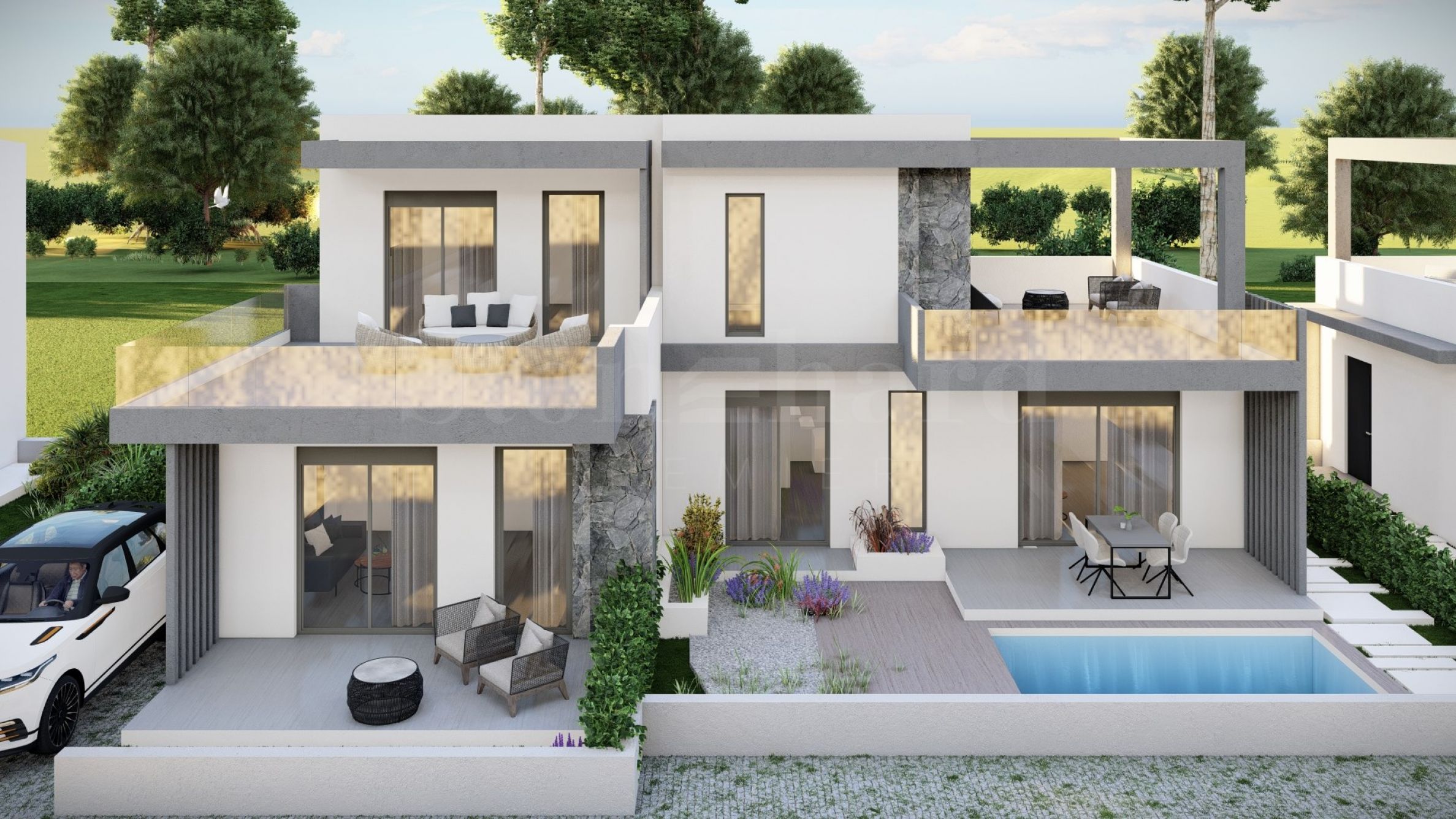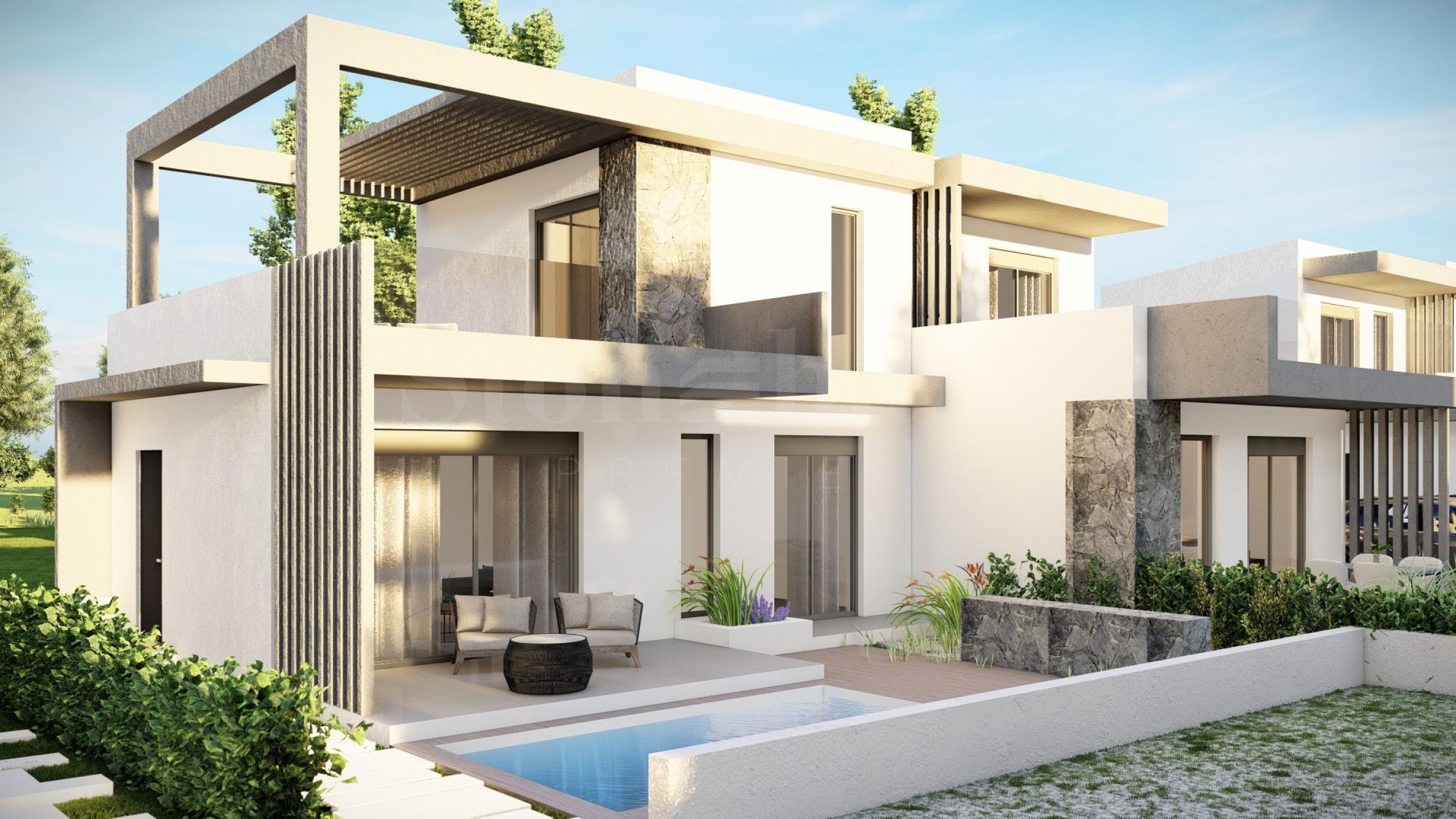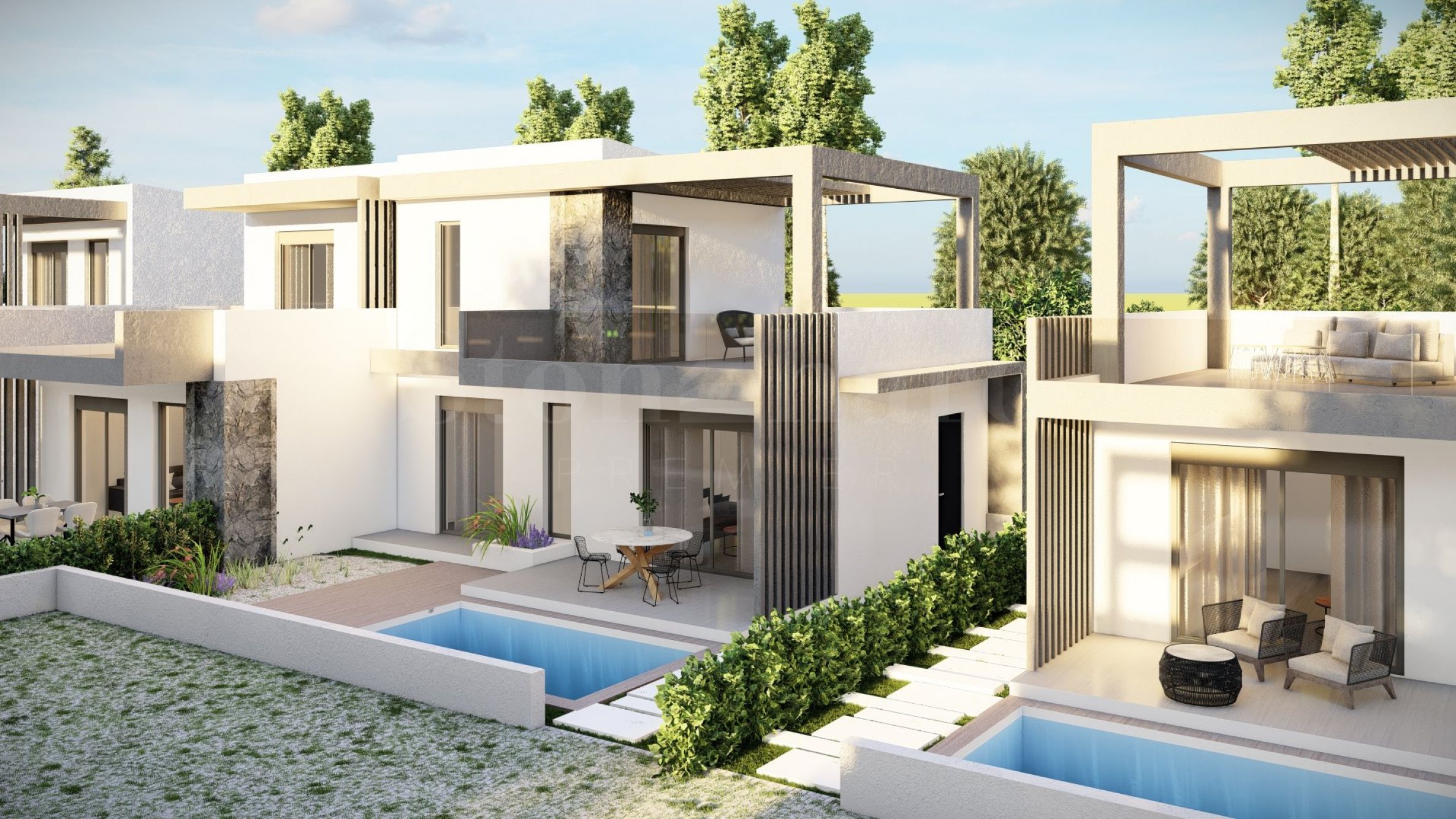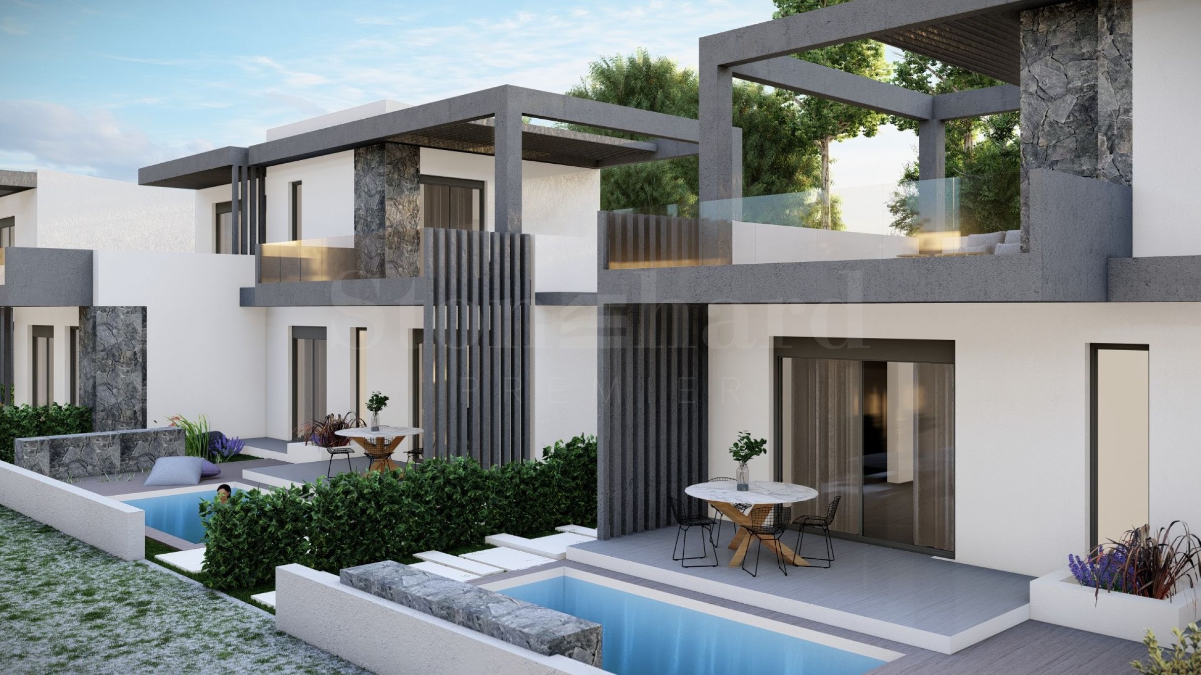 Komplex se skládá z 20 letních rezidencí, které se nacházejí v klidné a tiché lokalitě v letovisku. Domy mají elegantní, krásně zpracované fasády, kombinující světlé tóny a přírodní materiály, a vytvářejí tak pocit luxusu a pohodlí. Dispozice domů jsou navrženy tak, aby nabízely maximální komfort, a velká okna poskytují v místnostech dostatek přirozeného světla. Domy mají také prostorné balkony, které jsou ideálním místem pro setkávání s přáteli a příjemné rozhovory pod hvězdnou oblohou. Vybrané domy mají venkovní bazén přímo u verandy, který je kromě možnosti osvěžujících koupelí také vynikajícím místem pro rodinnou zábavu a hry s dětmi.