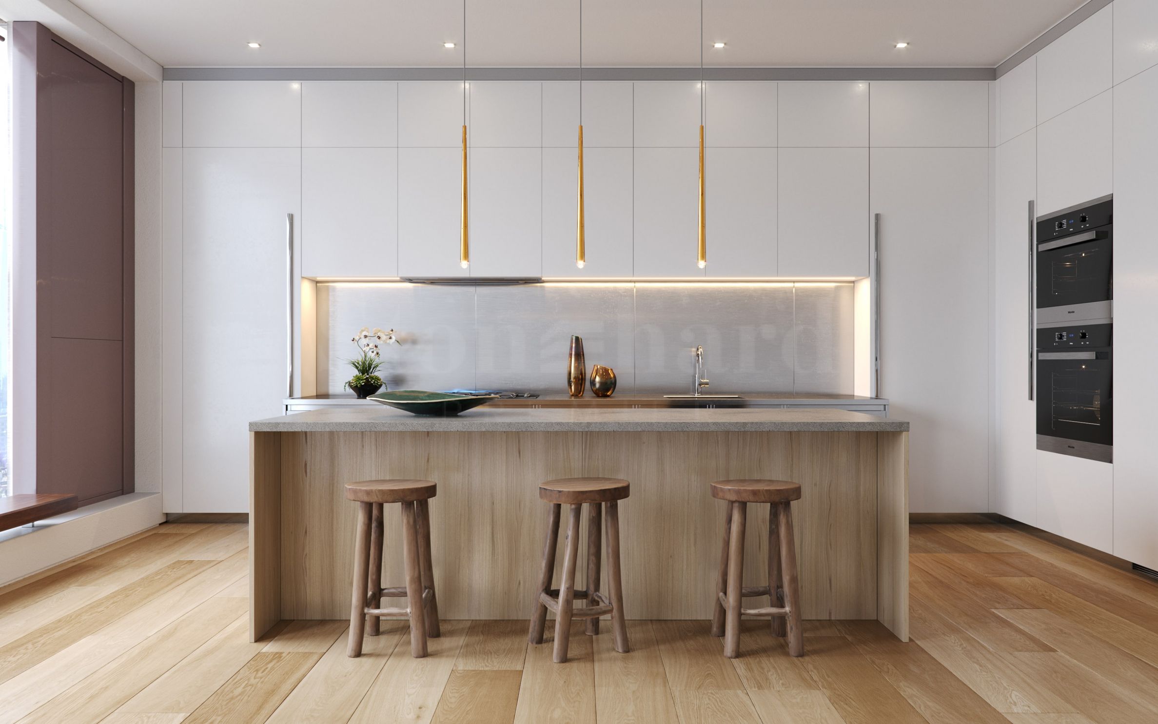 Všechny rezidence jsou vybaveny elegantními kuchyněmi navrženými společností Boffi, které mistrovsky kombinují moderní a vysoce kvalitní evropské materiály. Elegantní centrální ostrůvek s pracovní deskou Pietra Serena a dvířky s dubovou povrchovou úpravou jsou klíčovými detaily, které vytvářejí skutečně dokonalý kulinářský zážitek – ať už hostíte rodinu nebo přátele.