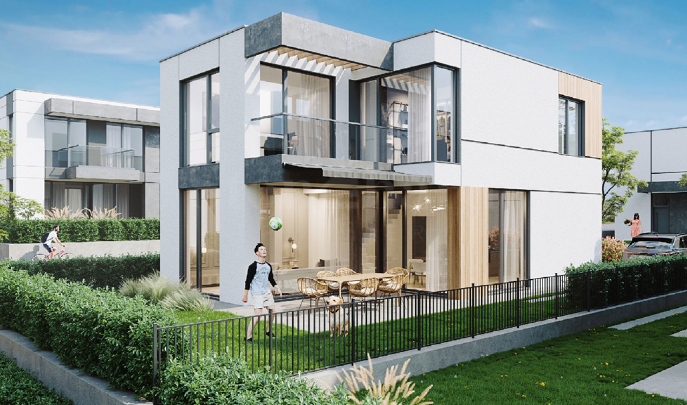 Každý dům má vlastní dvůr a dvě parkovací místa.