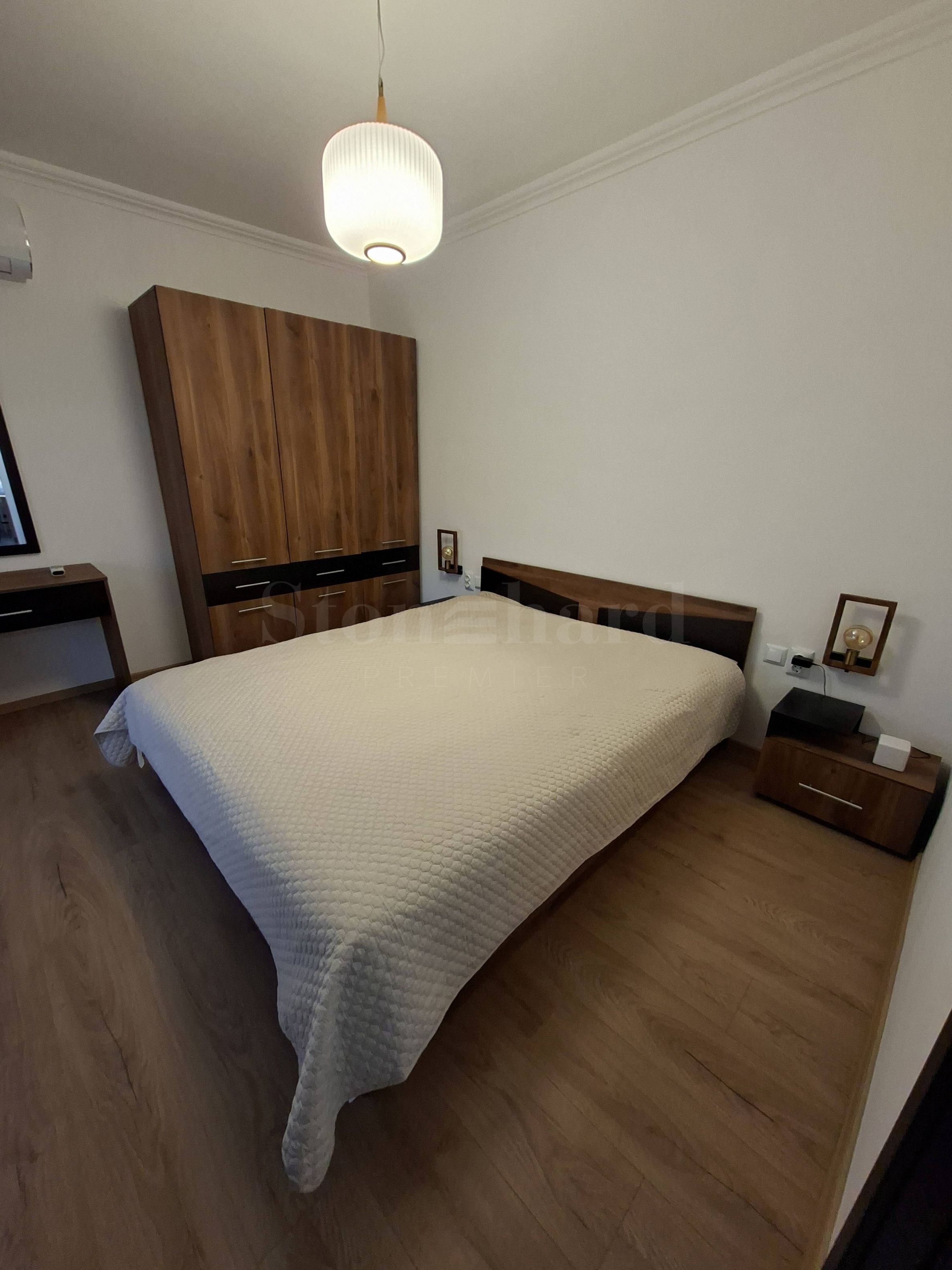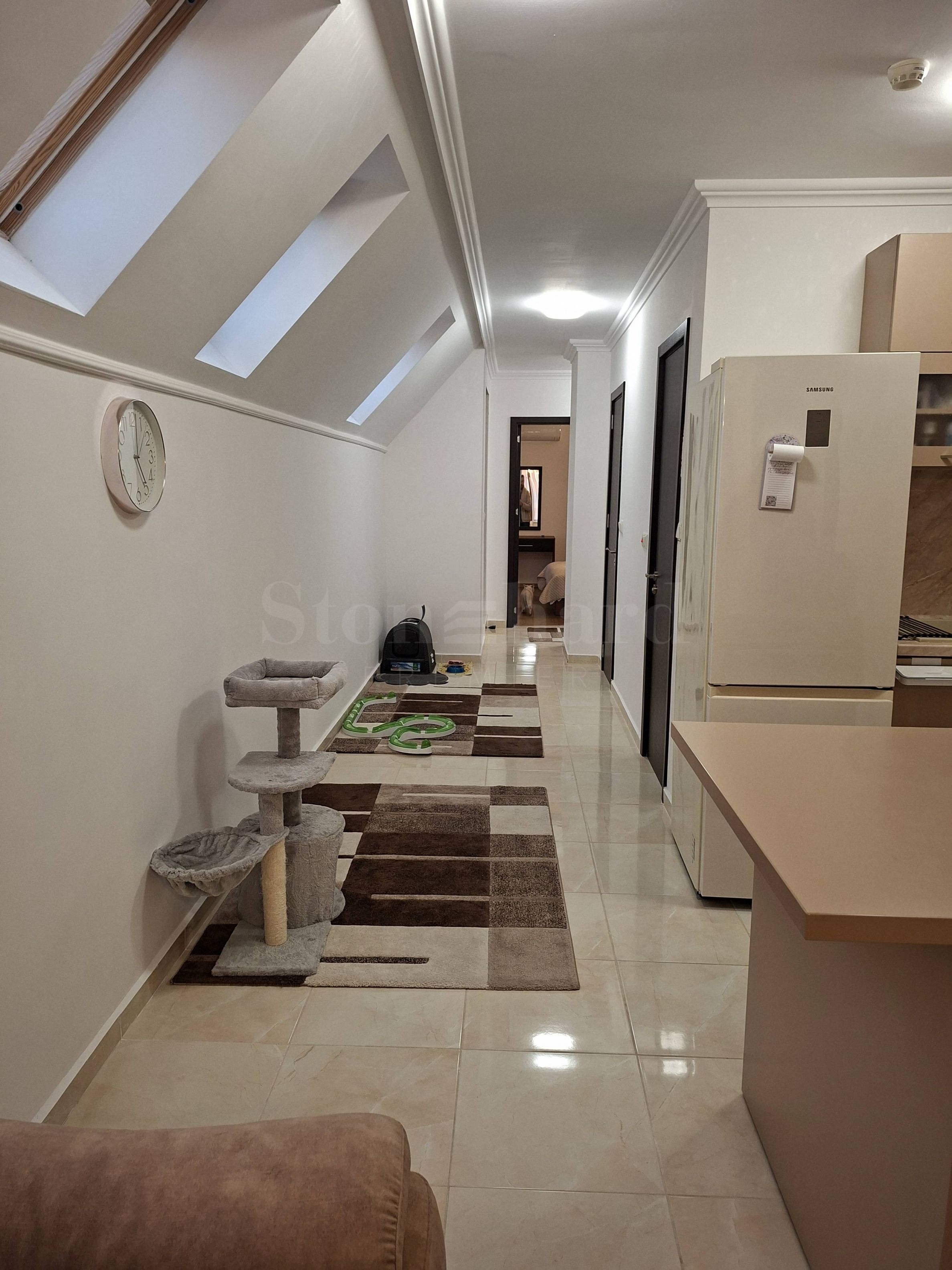 Byt je plně zařízený a vybavený kvalitním nábytkem a špičkovou technikou. Obě ložnice mají podlahové vytápění a klimatizaci. Na jedné terase je namontovaná automatická roleta.