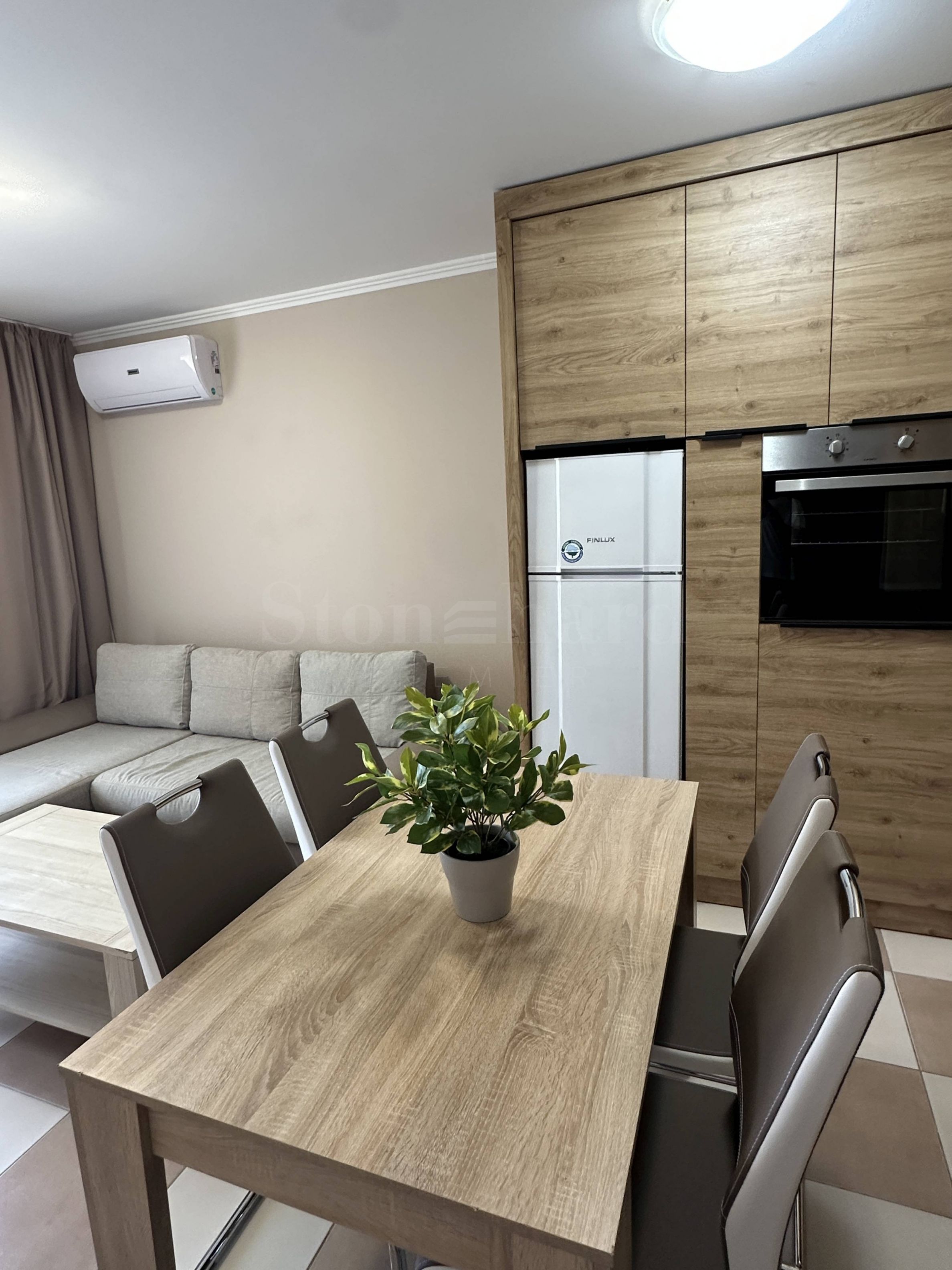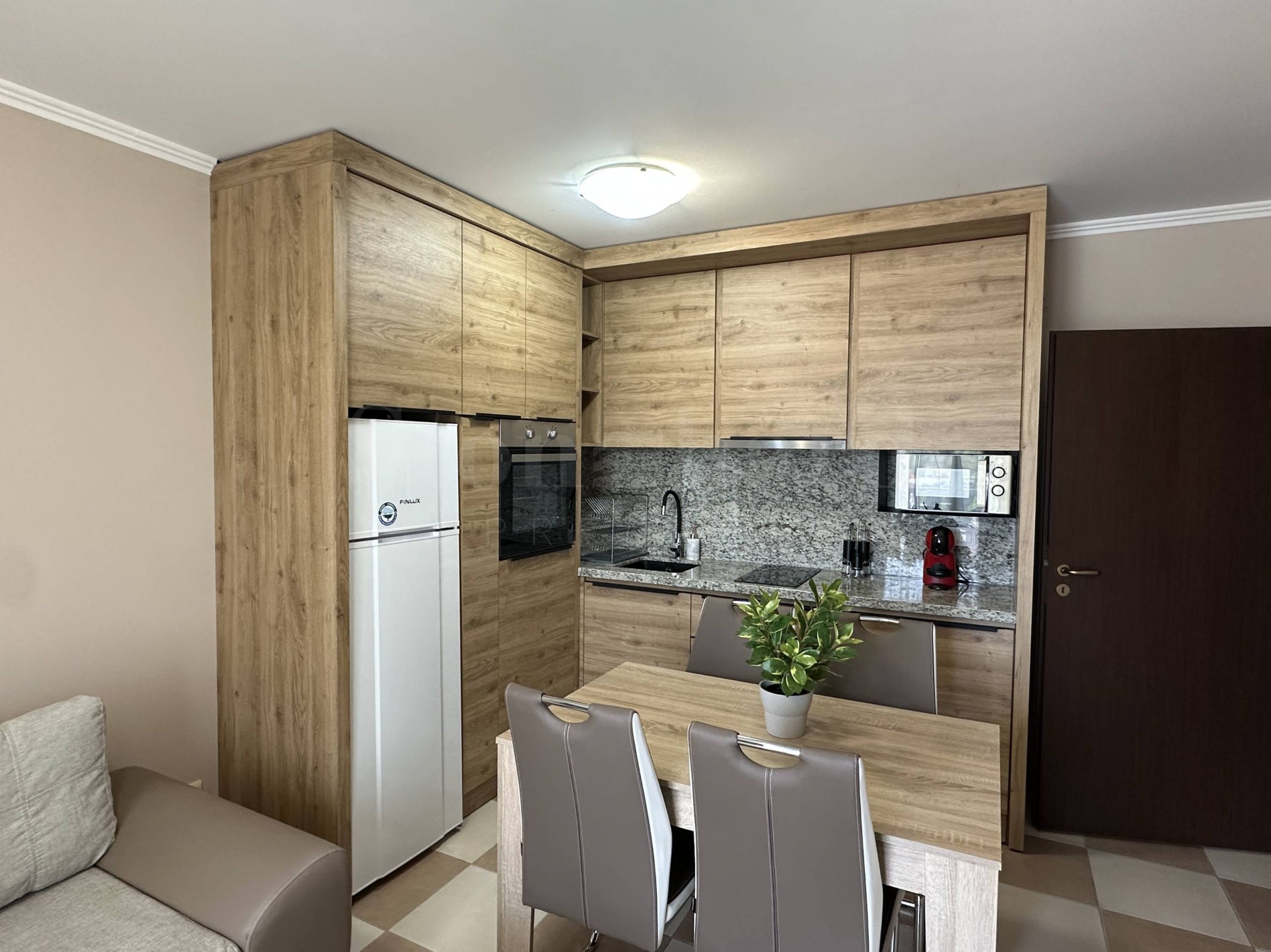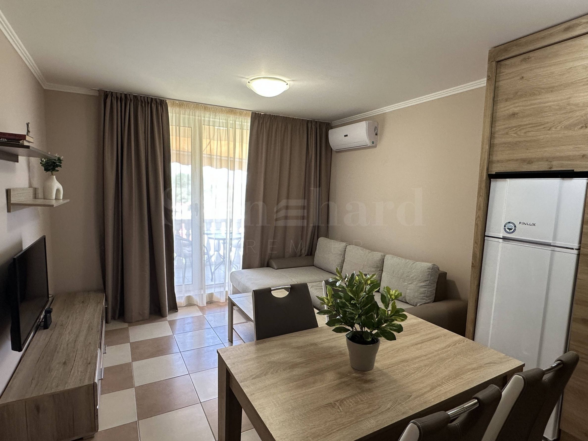 Nemovitost se nachází ve 4. patře a má boční výhled na moře. Je součástí elitního komplexu s vybavením, který je umístěn přímo u zálivu a pláže Zlatna ribka, čtvrť Gradina, s pohodlným přístupem z hlavní silnice Burgas-Sozopol. Do Sozopolu je to autem jen 5 minut.