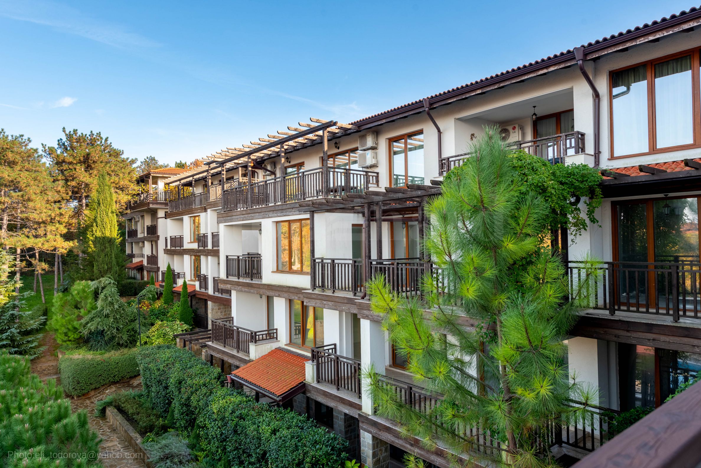 Nabízíme k prodeji dvoupokojový apartmán o rozloze 125,27 m² v novém komplexu, který se nachází uprostřed borového lesa, pouhých 250 metrů od "Carského zálivu" a pláže "Zlatá rybka", pár minut jízdy autem od města Sozopol.