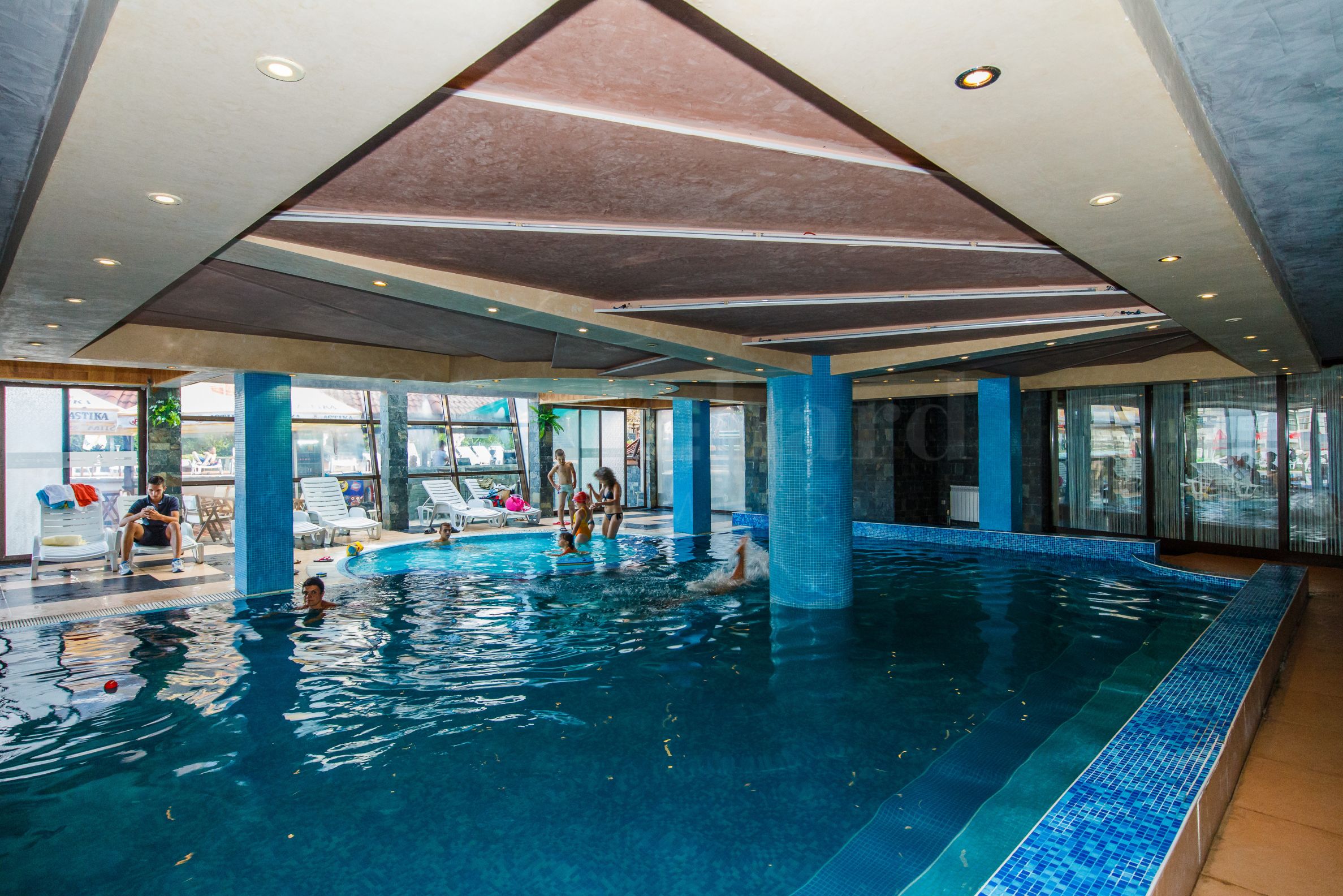venkovní a vnitřní vyhřívaný bazén s částí pro dospělé a částí pro děti;