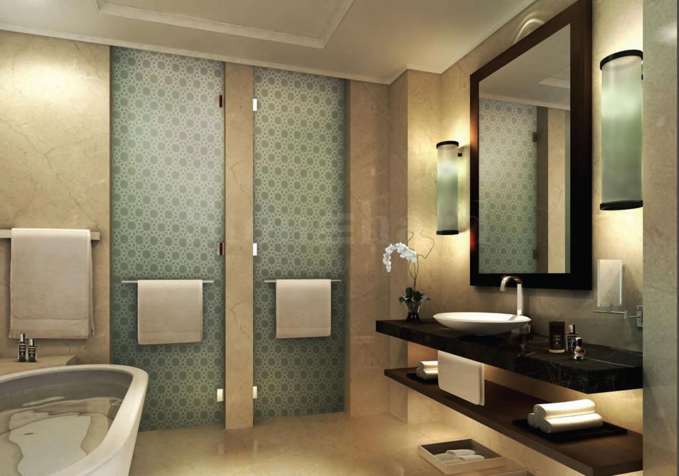 Apartmány jsou prostorné a disponují panoramatickými okny od podlahy až ke stropu, která poskytují přirozené světlo a působivý výhled na Arabský záliv a úchvatné panorama města. Barevné paletě dominuje bílá a také ušlechtilé odstíny hnědé a tyrkysové, které ladí s mořskou krajinou obklopující komplex. Kuchyně jsou plně vybaveny vestavěnými spotřebiči Siemens a koupelny jsou vybaveny armaturami Villeroy & Boch, Bravat a Grohe. V závislosti na typu nemovitosti budou mít apartmány 1 nebo 2 parkovací místa.