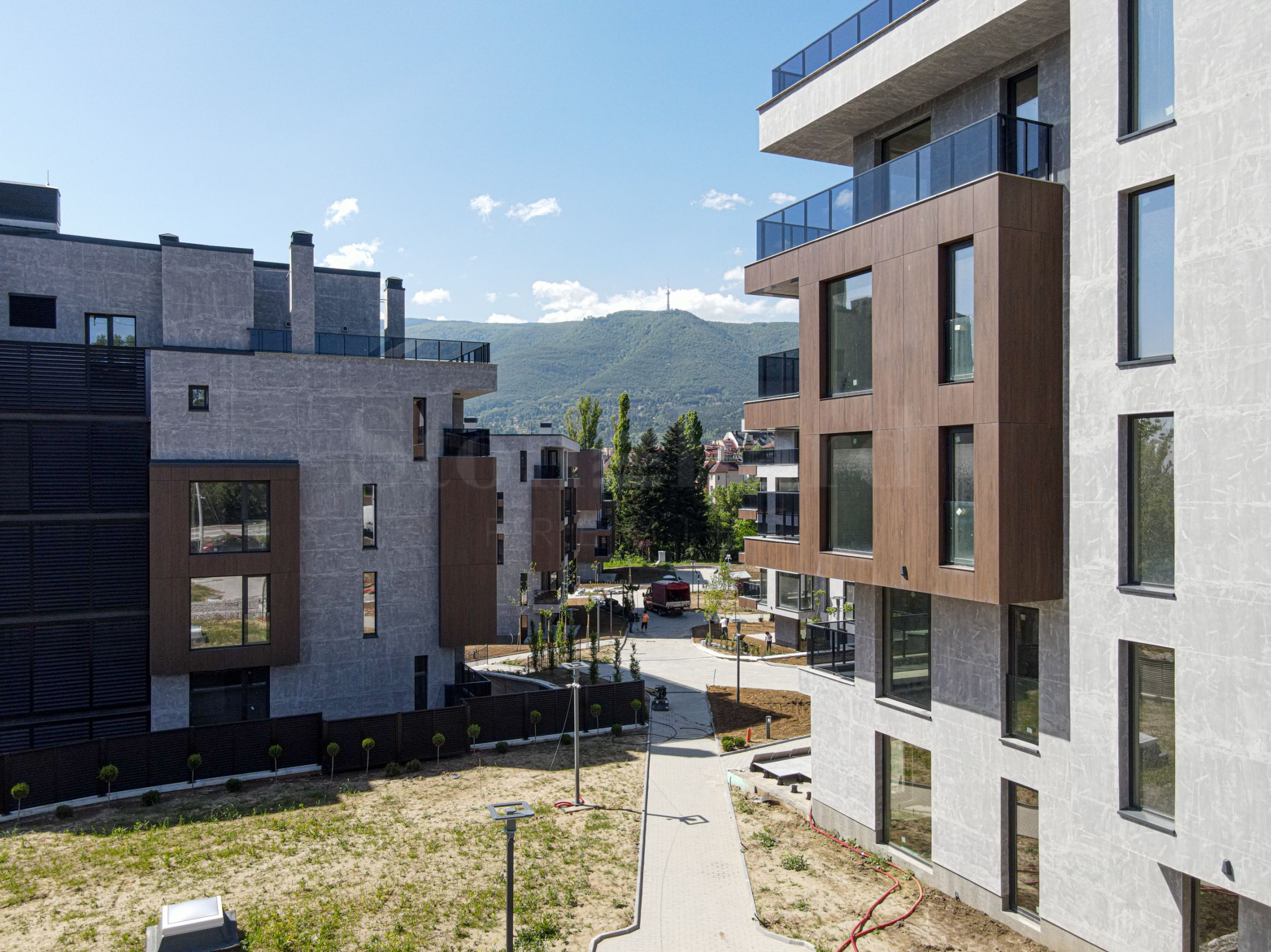 Mezi největší výhody tohoto komplexu však v porovnání s jinými novostavbami patří již existující komplexní, trvalá terénní úprava Diplomatického klubu. V komplexu se nachází největší sekvoje v Sofii a stoletý ořešák, které spolu s ostatními vysokými stromy poskytují hustý stín na dvoře a odhlučňují prostor.