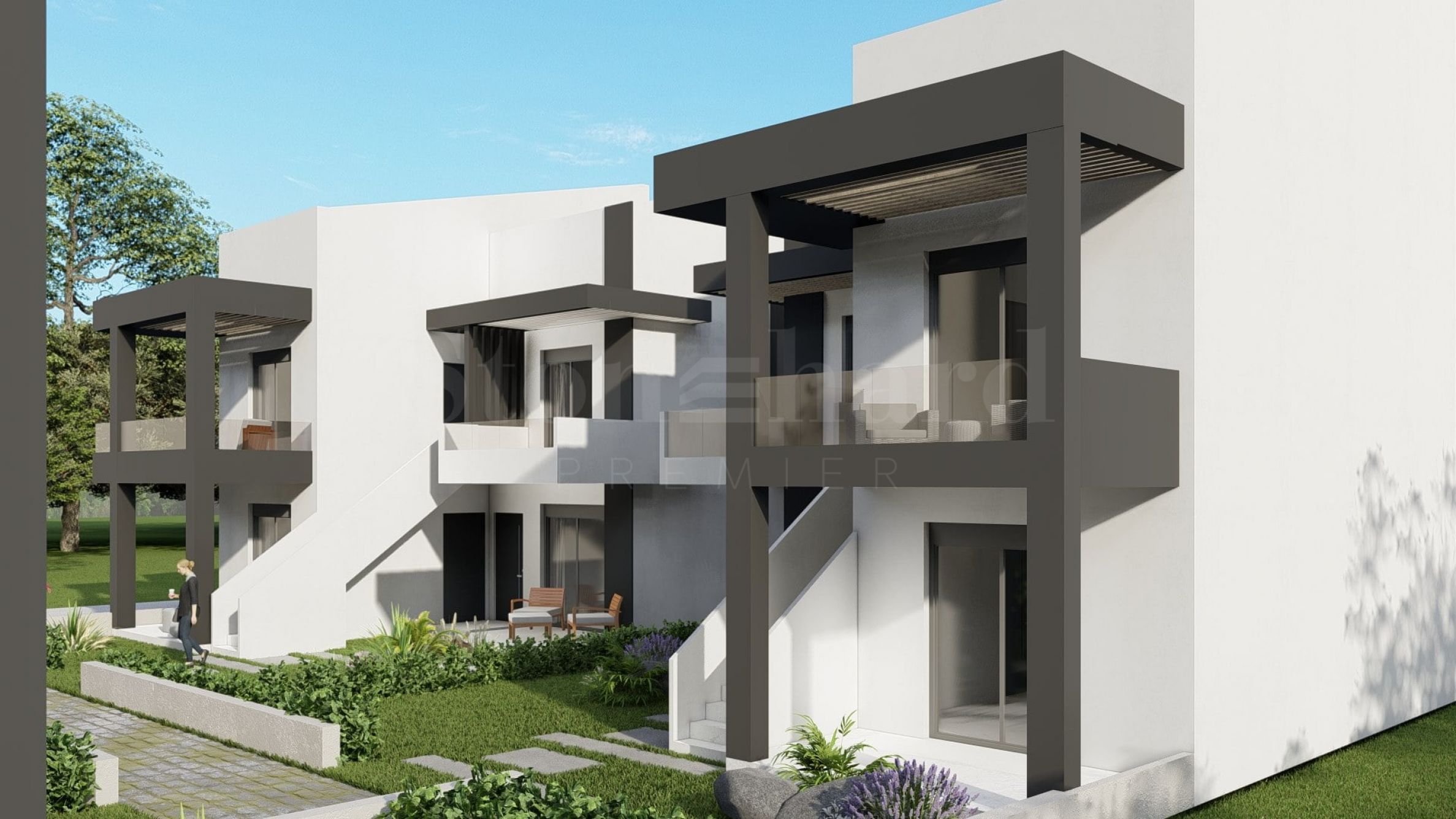 Prodávají se kompletně „na klíč“, se vstupními a interiérovými dveřmi, podlahou, kuchyňskými skříňkami a vestavěnou koupelnou. O Paralii Ofrinio