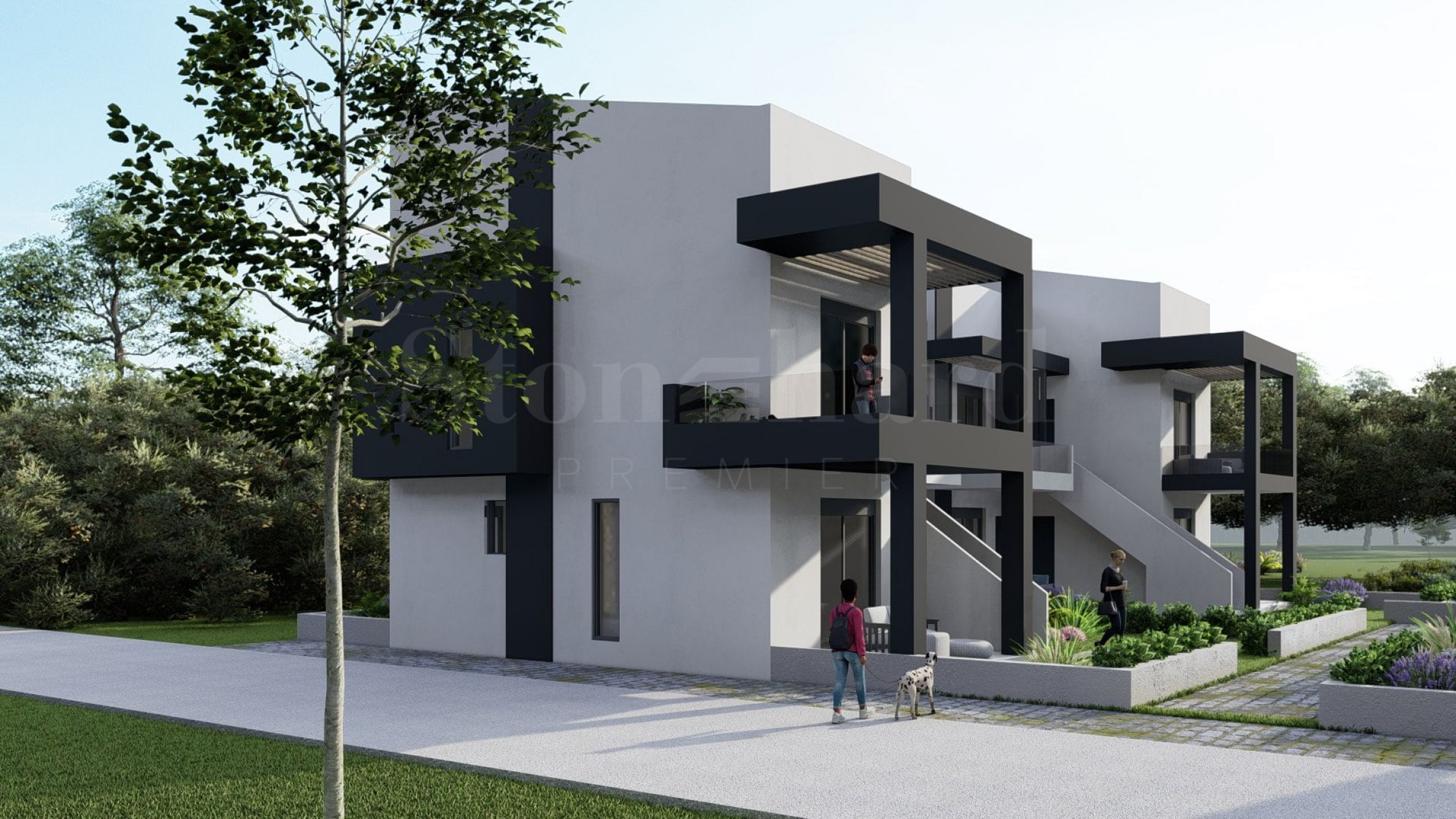 Dioni se těší vynikající poloze - nachází se pouhých 5 minut chůze od nádherné pláže a zároveň je v těsné blízkosti hlavní ulice letoviska, kde najdete řadu obchodů, restaurací, taveren a různých možností zábavy. Komplex se skládá ze 2 budov s celkem 16 apartmány, přičemž každý apartmán je postaven tak, aby obyvatelům nabízel pohodlné prostory, moderní architektonická řešení a působivou estetiku. Venkovní prostory komplexu byly pečlivě navrženy tak, aby vyzařovaly pocit pohodlí a klidu. Díky nádherným zahradám a speciálně navrženým relaxačním zónám si obyvatelé mohou užívat chvíle klidu v přírodním a klidném prostředí.