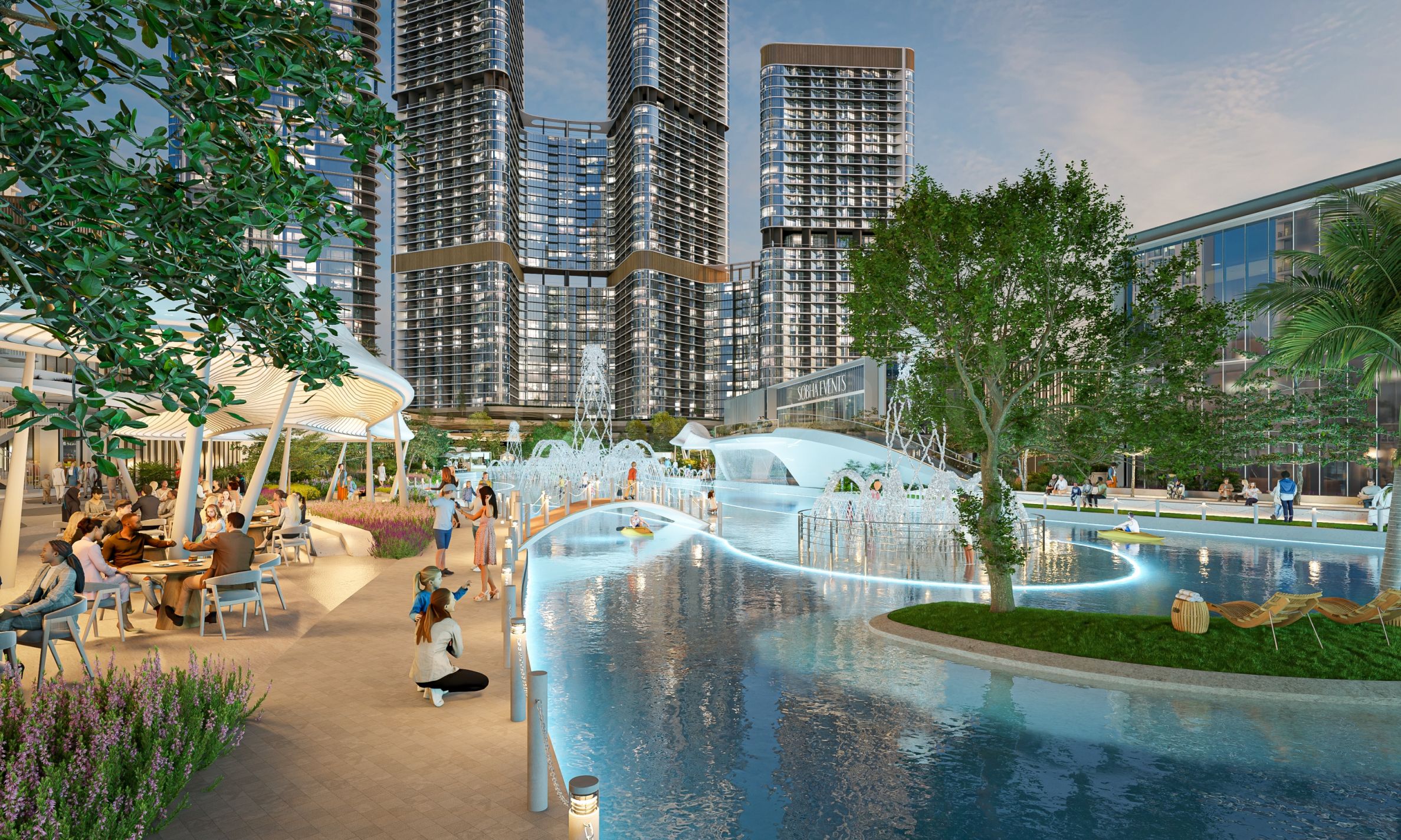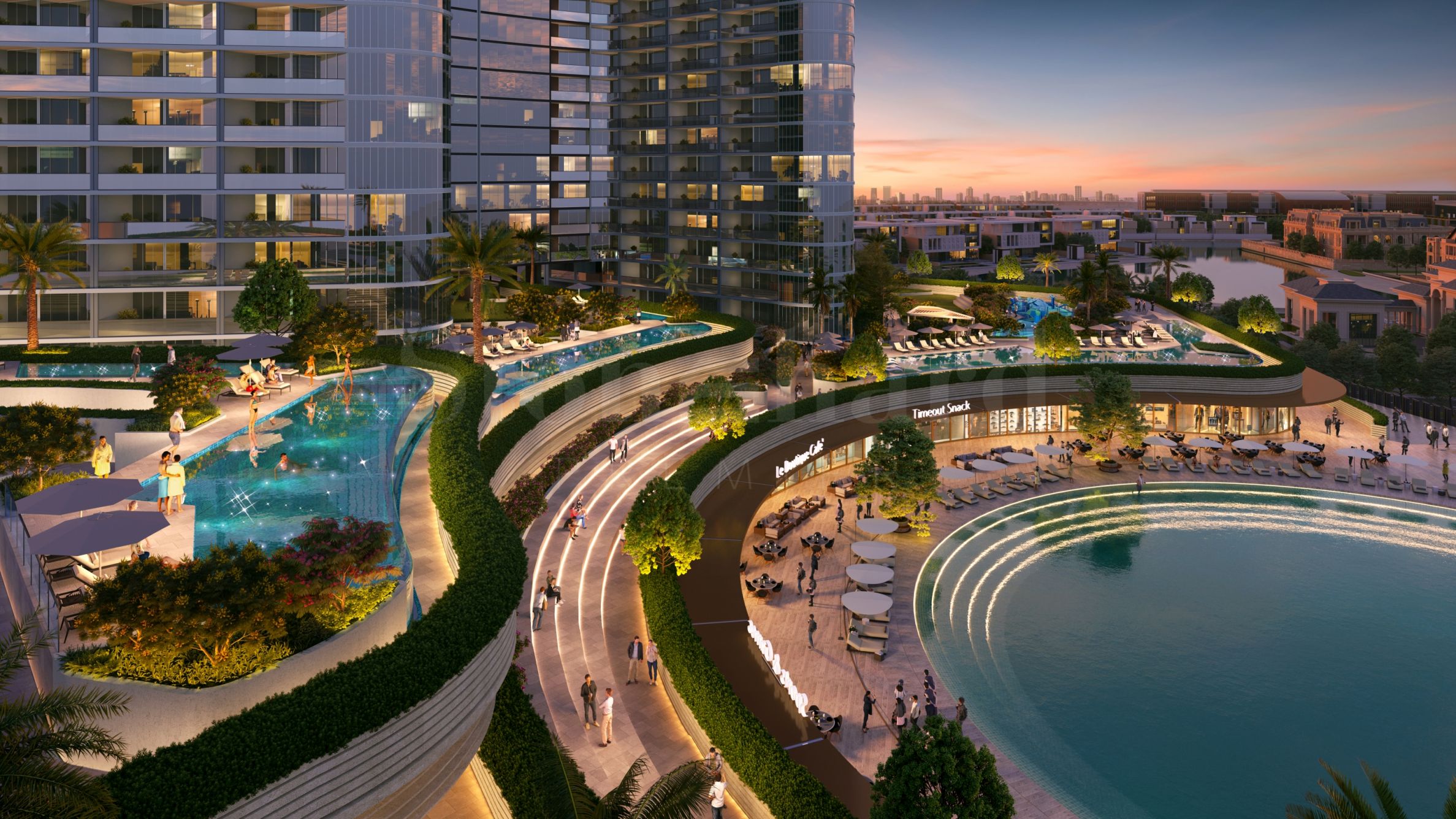 Ohromující bazén ve tvaru amfiteátru, umístěný v srdci zástavby a obklopený vybranými restauracemi, vytváří úžasné prostředí, které se elegantně přizpůsobuje měnící se hladině vody. Tento prostor není jen vizuálním potěšením, ale také společenským centrem, kde se obyvatelé mohou setkávat, navazovat kontakty a vytvářet trvalé vzpomínky. Bujná krajina komunity, modré laguny a stromy lemované stezky přispívají k idylickému prostředí, které působí daleko od shonu a ruchu městského života.