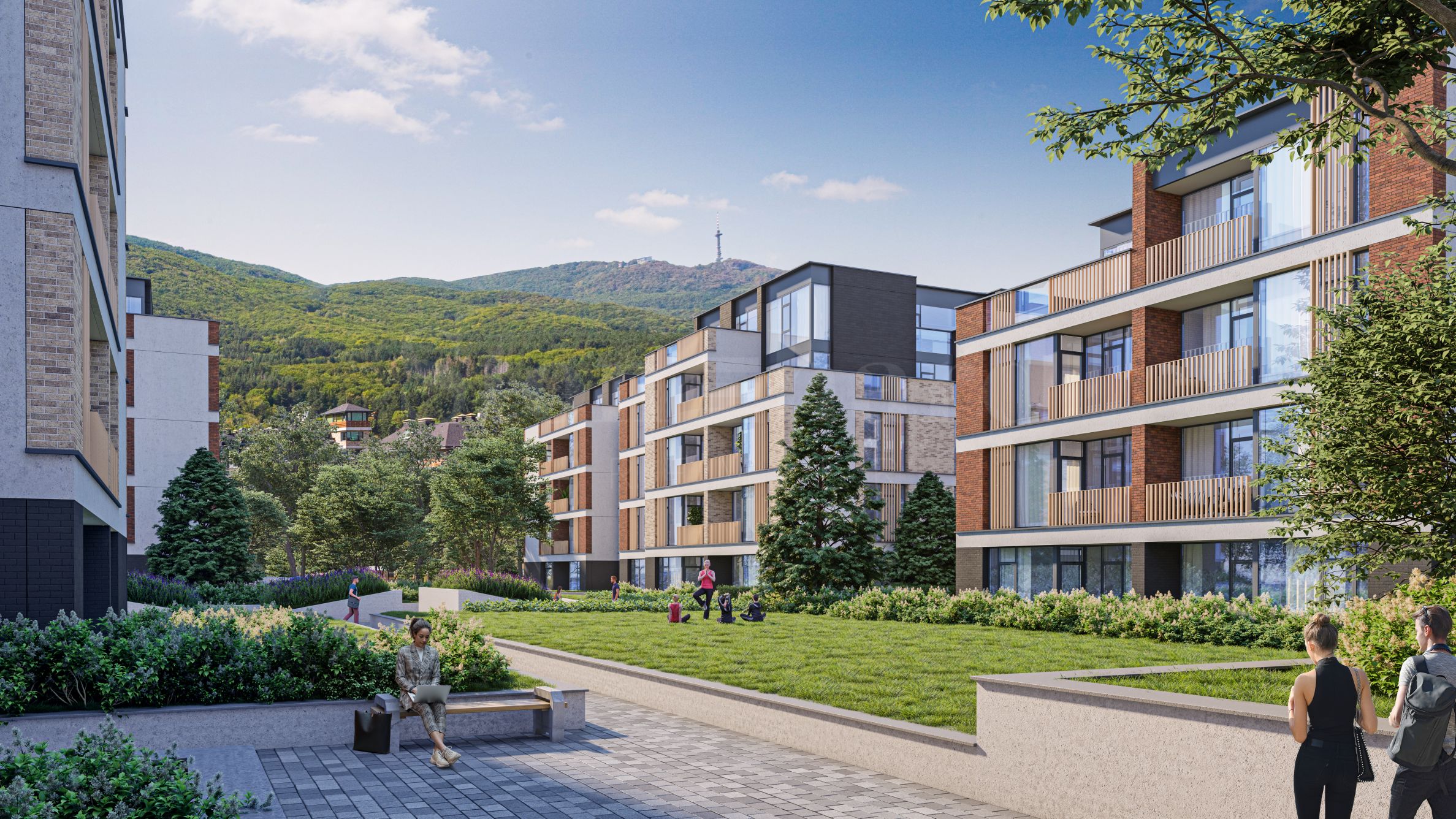 Komplex, který se skládá z 8 budov s celkem 204 apartmány a studii, je navržen s funkčním uspořádáním a panoramatickým výhledem na město a hory. Zelené plochy mezi budovami jsou navrženy se zahradami, turistickými stezkami, rekreačními zónami a dětskými hřišti. Pro větší pohodlí je k dispozici fitness centrum, restaurace, kontrolovaný přístup a ostraha. Podzemní parkoviště nabízí pohodlná parkovací místa a garáže.